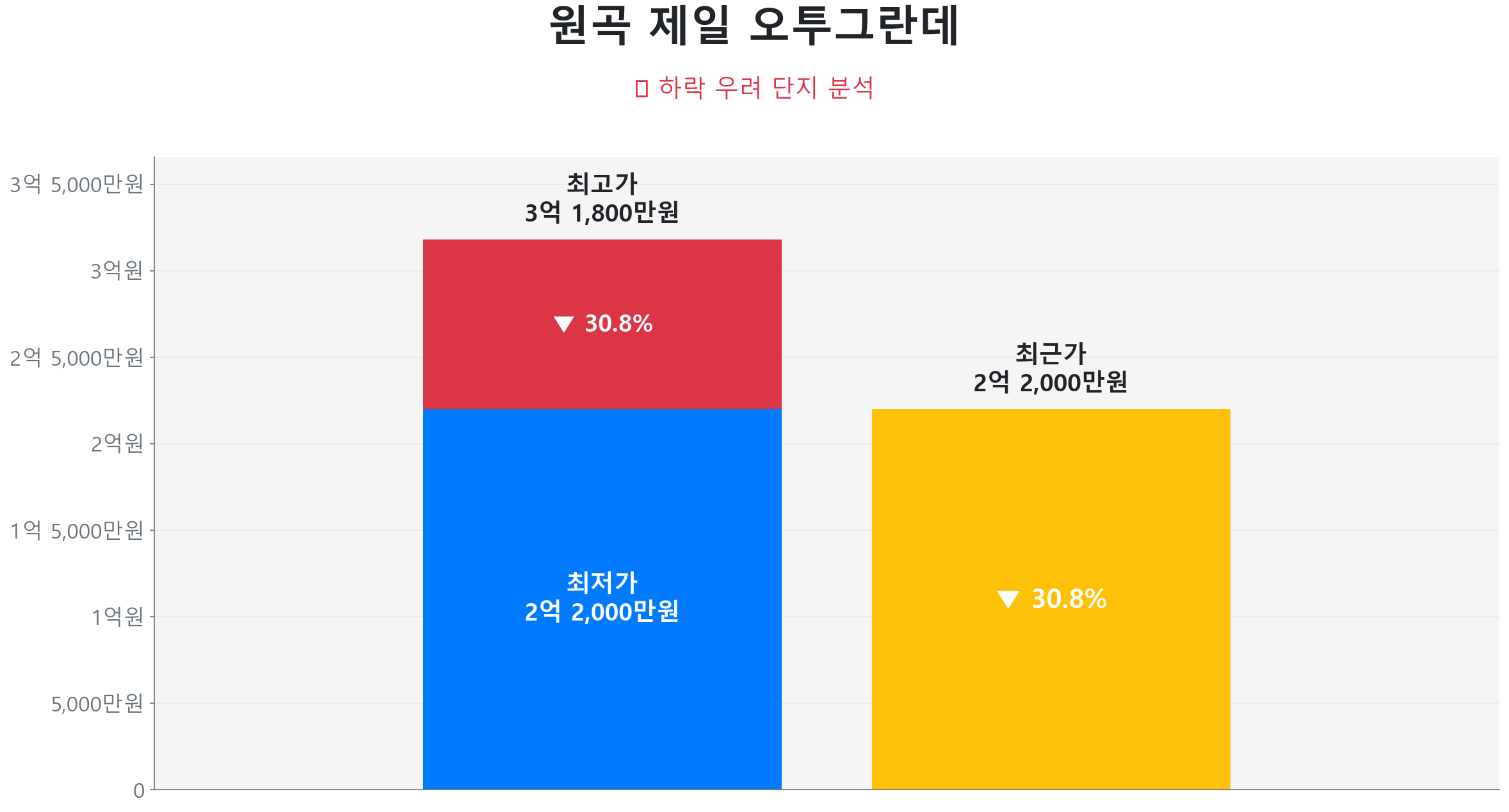 이어서 원곡 제일 오투그란데 (77.2㎡, 준공 7년차)는 꾸준한 거래 속에서도 반등이 정체된 보합세를 보이며 최근 2억 2,000만 원대에 머물러 있습니다.