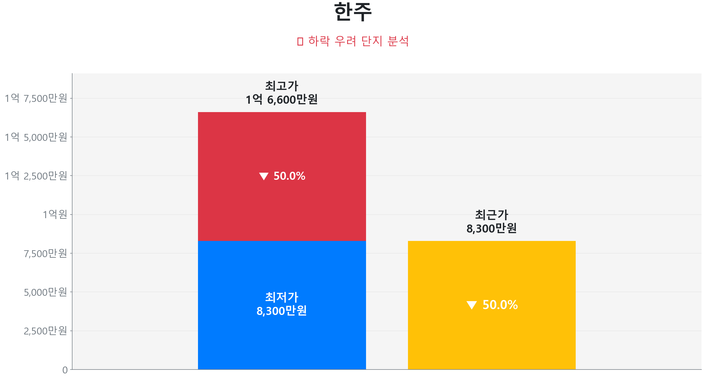 마지막으로 봉산동 한주 (84.0㎡, 준공 33년차) 역시 구축의 노후화 리스크와 시장 소외 현상이 겹치며 최근 고점 대비 50% 하락한 8,300만 원에 거래되는 등 뼈아픈 조정을 겪고 있습니다.