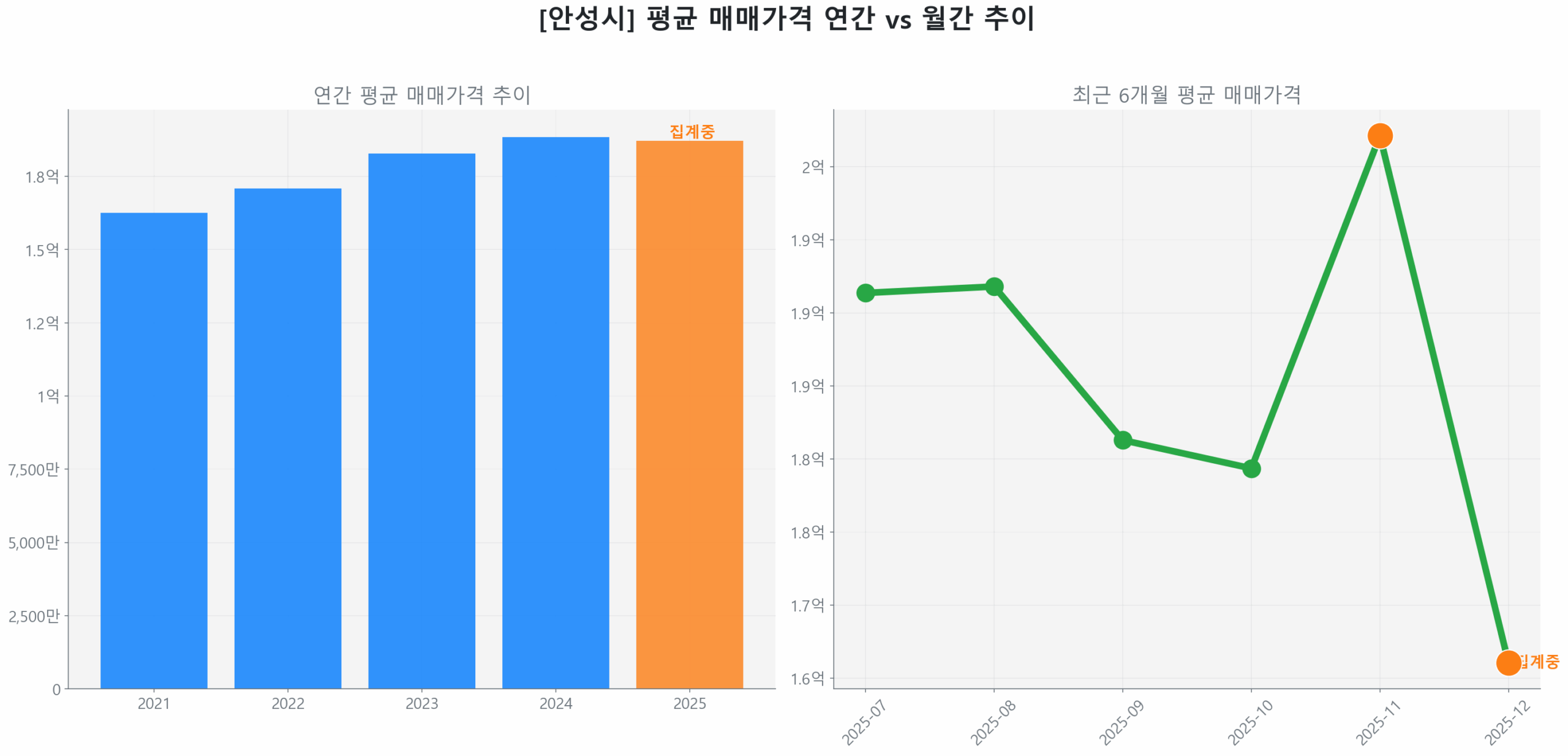 현재 안성시 시장은 역사적 저점 대비 66.53% 반등하며 본격적인 ‘회복(Recovery)’ 국면에 진입했습니다. 2021년 6월의 역사적 고점과 2025년 12월(현재 집계중으로 최종 집계시 변동 여지 있음)의 저점 사이에서 형성된 하락폭을 상당 부분 만회하며 점진적인 우상향 기틀을 마련한 상태입니다.