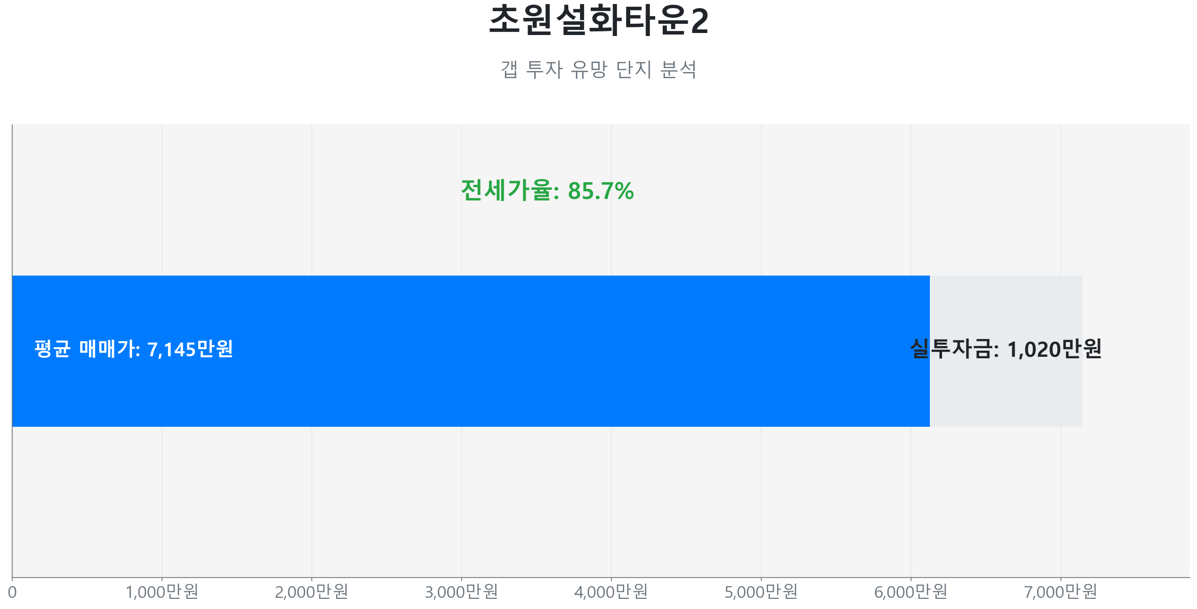 마지막으로 좌부동 초원설화타운2 (59㎡) 역시 약 1,020만 원의 실투자금과 85.7%의 전세가율을 보이며 분석의 정합성을 높여주는 결정적인 퍼즐 조각입니다.