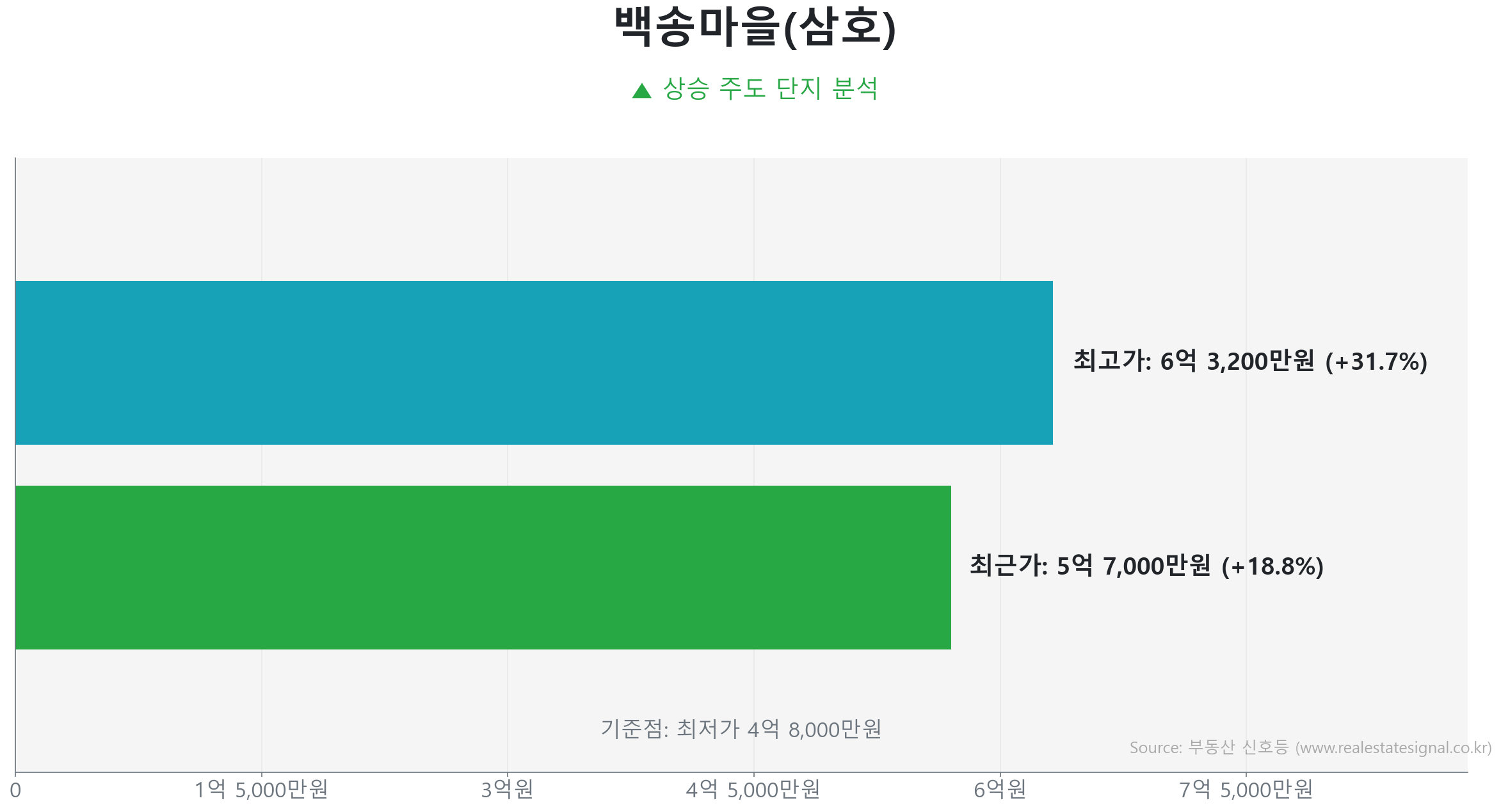 백송마을(삼호)는 1992년 준공된 786세대로 초·중·고교 무결점 학세권과 재건축 선도지구 지정이라는 독보적 프리미엄으로 시장을 주도하고 있습니다. 다만 34년 차 최고령 연식에 따른 극심한 주차난과 배관 스트레스로 인해 단지 내 인테리어 양극화 현상이 뚜렷하게 나타나는 곳입니다.