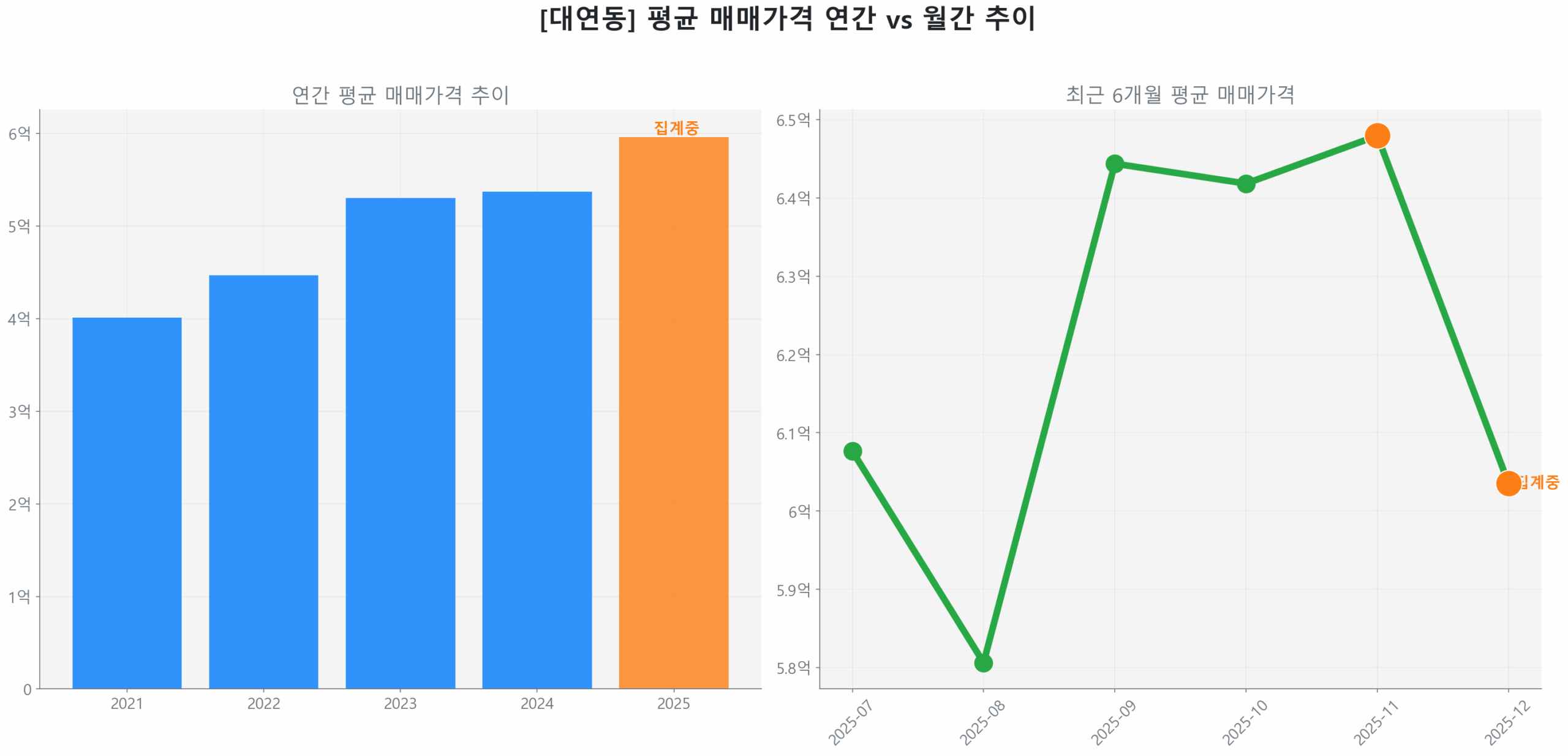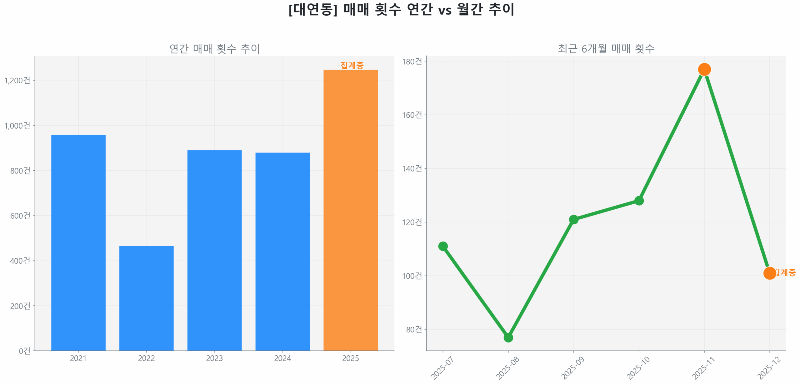2025년 12월 30일 확정 데이터 기준, 부산 대연동 부동산 시장은 역사적 저점 대비 100%의 반등을 기록하며 명확한 ‘회복(Recovery)’ 국면에 진입했습니다.