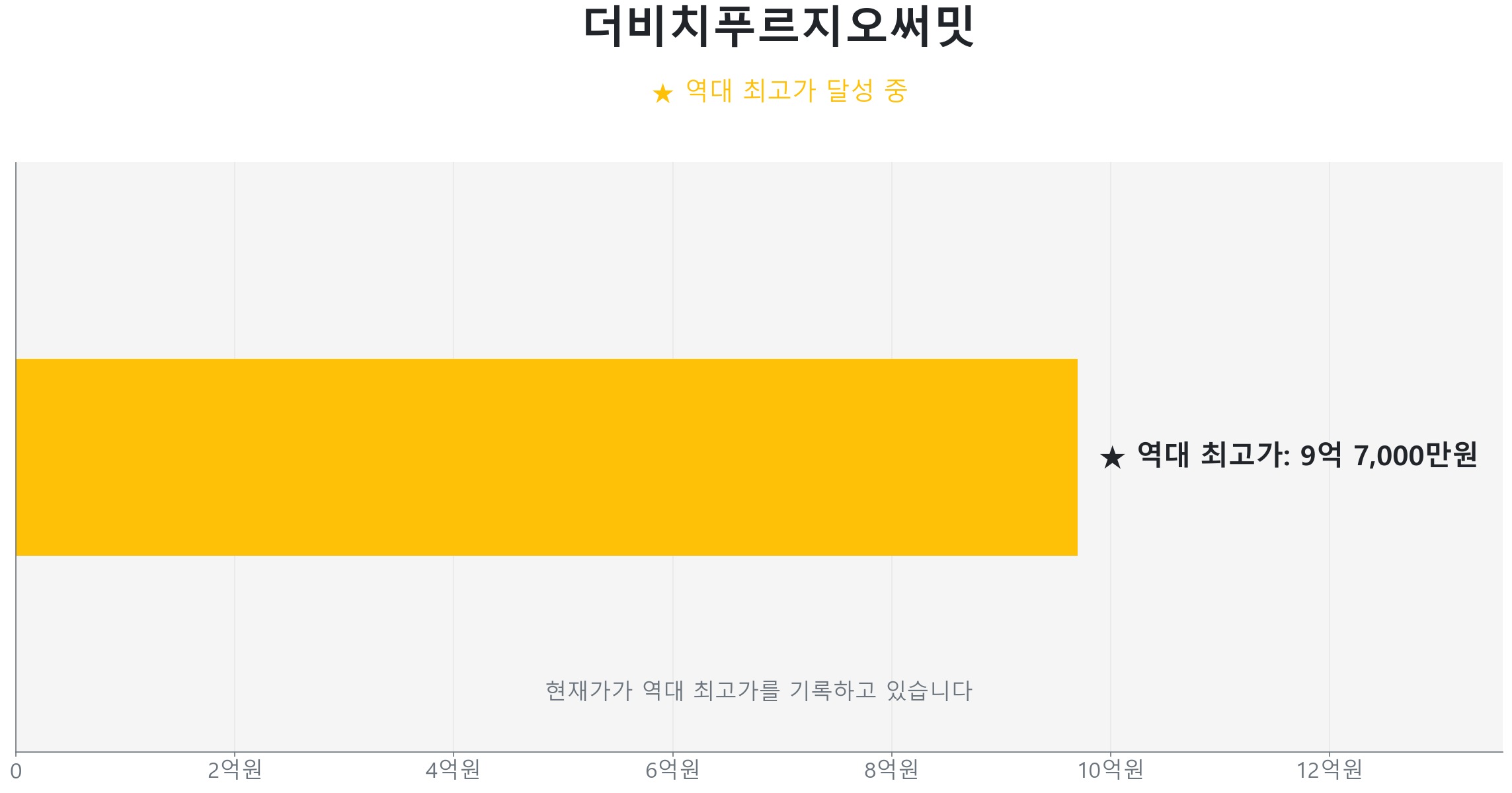 더비치 푸르지오 써밋 (59.0㎡)은 광안대교 영구 조망을 갖춘 부산 최초의 하이엔드 단지로, 소형 평형임에도 9억 원대 후반의 신고가를 기록하며 지역의 가격 천장을 높이고 있습니다.