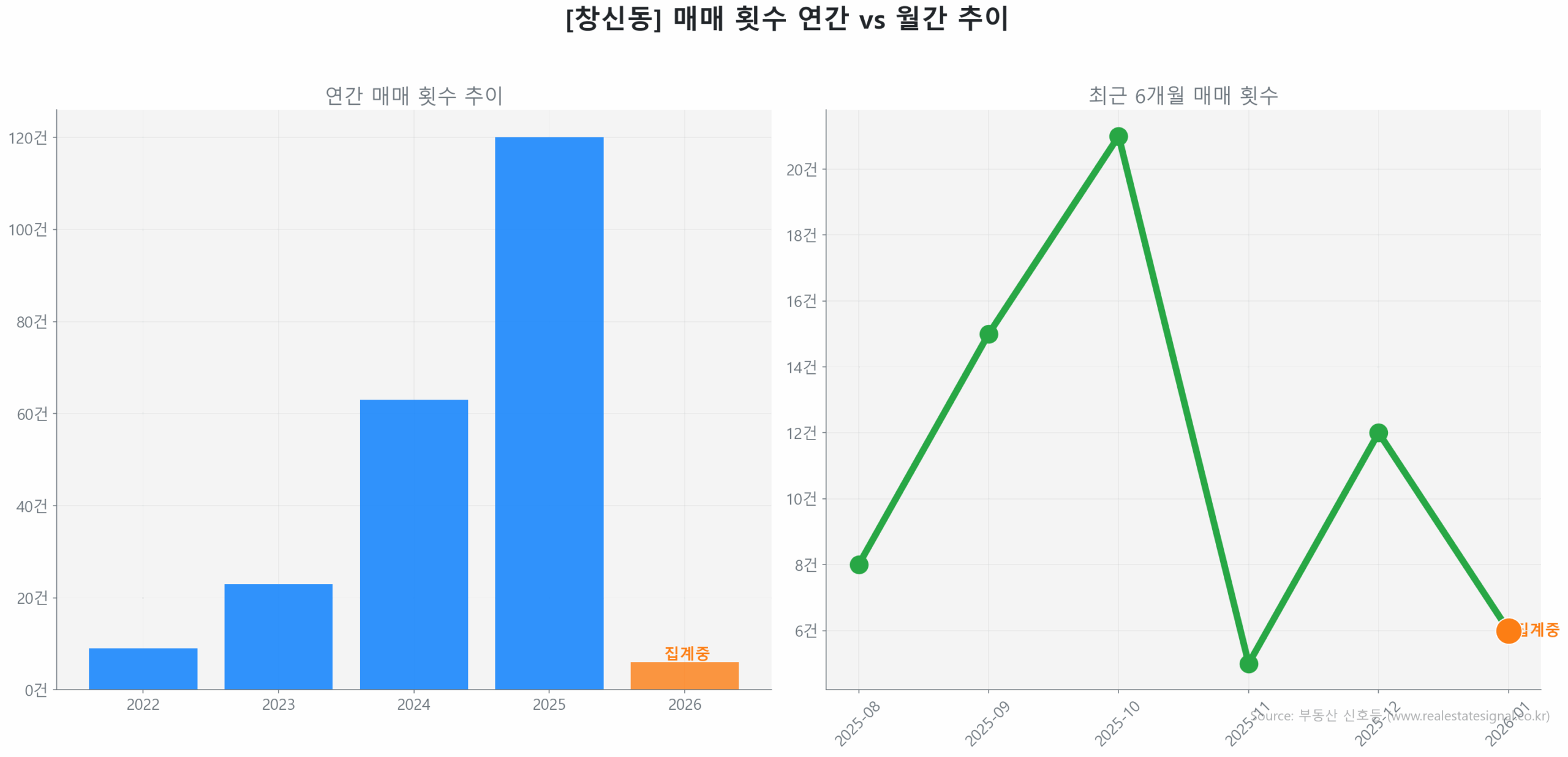 결론적으로 창신동은 규제라는 허들 속에서도 구축 대단지의 실거주 가치를 기반으로 한 ‘선별적 회복 초기 국면’임이 명확합니다.
