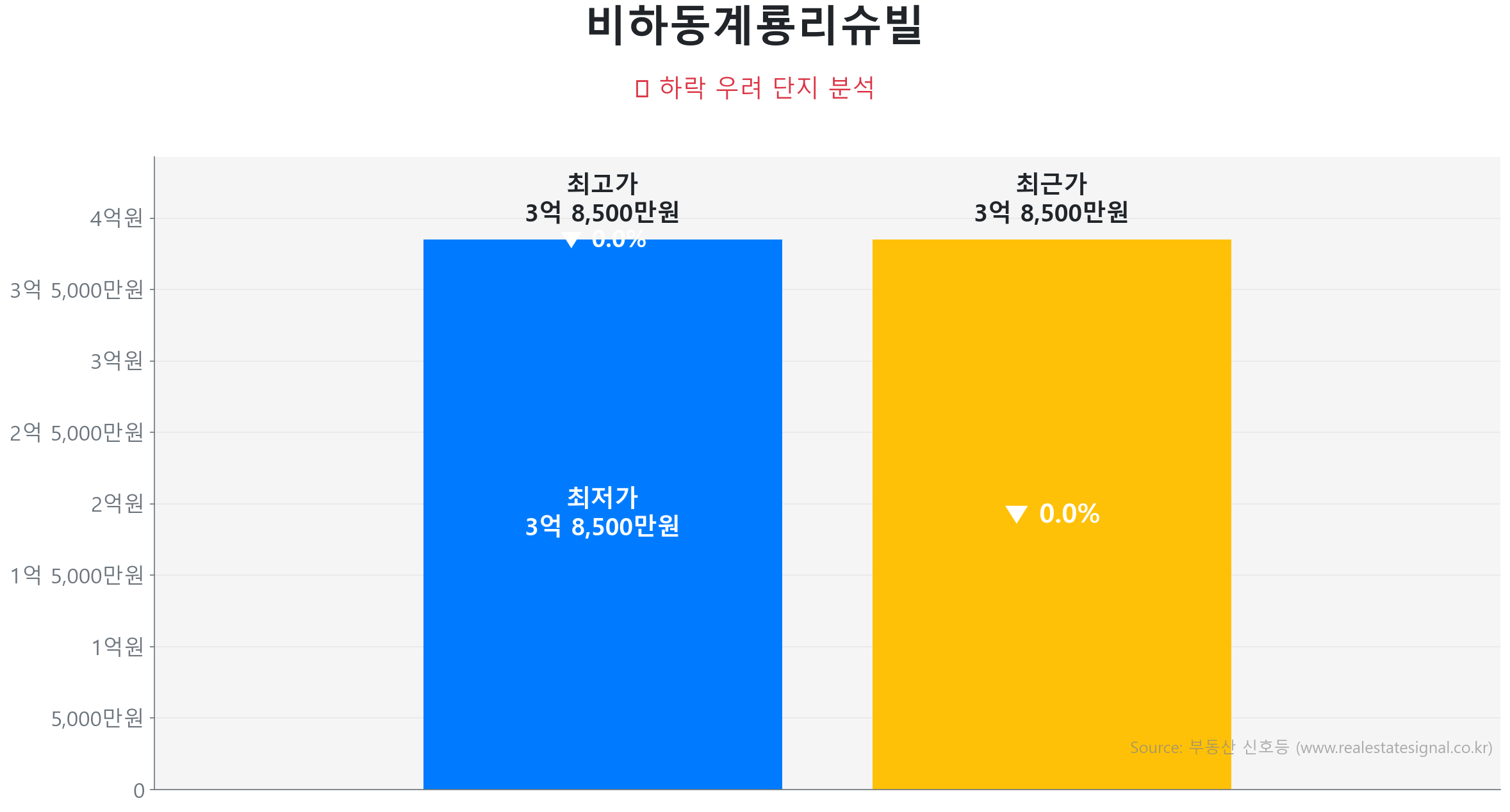 반면, 조정 단지로 분류되었음에도 이례적인 고점 돌파 행보를 보이는 비하동계룡리슈빌(84.0㎡, 2006년 준공, 480세대)은 압도적 일조량과 고요한 환경을 프리미엄으로 인정받아 2026년 3월 15층 매물이 3억 8,500만 원에 거래되며 신고가를 경신하여 정성적 가치가 뚜렷한 단지의 독자적인 상승 저력을 보여주고 있습니다.