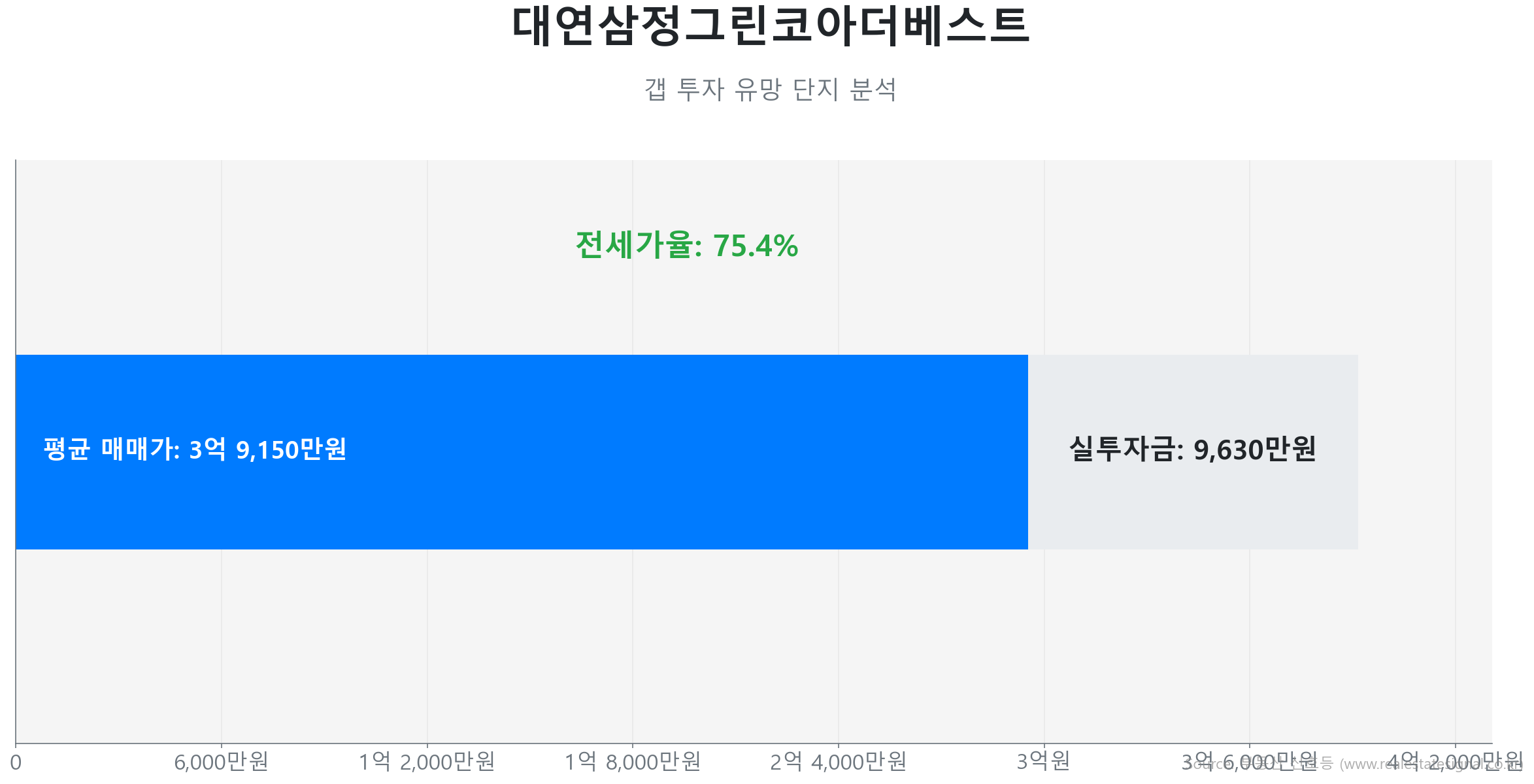 마지막으로 대연삼정그린코아더베스트(59.0㎡)는 준공 4년 차 신축임에도 전세가율 75.4%를 형성하고 있어, 약 9,630만 원의 실투자금으로 신축 프리미엄과 쾌적한 주거 환경을 동시에 선점할 수 있는 스마트한 선택지입니다.