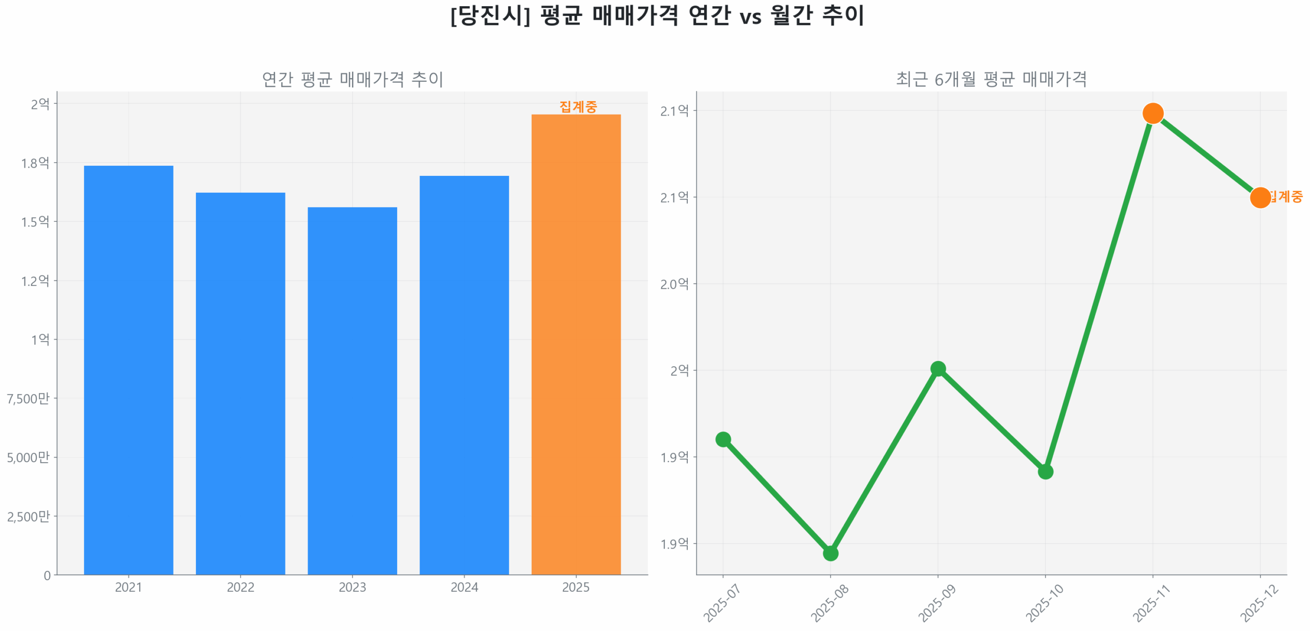 이러한 흐름은 가격 데이터에서 명확히 증명됩니다. 2024년, 당진 아파트 시세의 연평균 실거래가는 1억 6,939만 원 수준이었습니다.