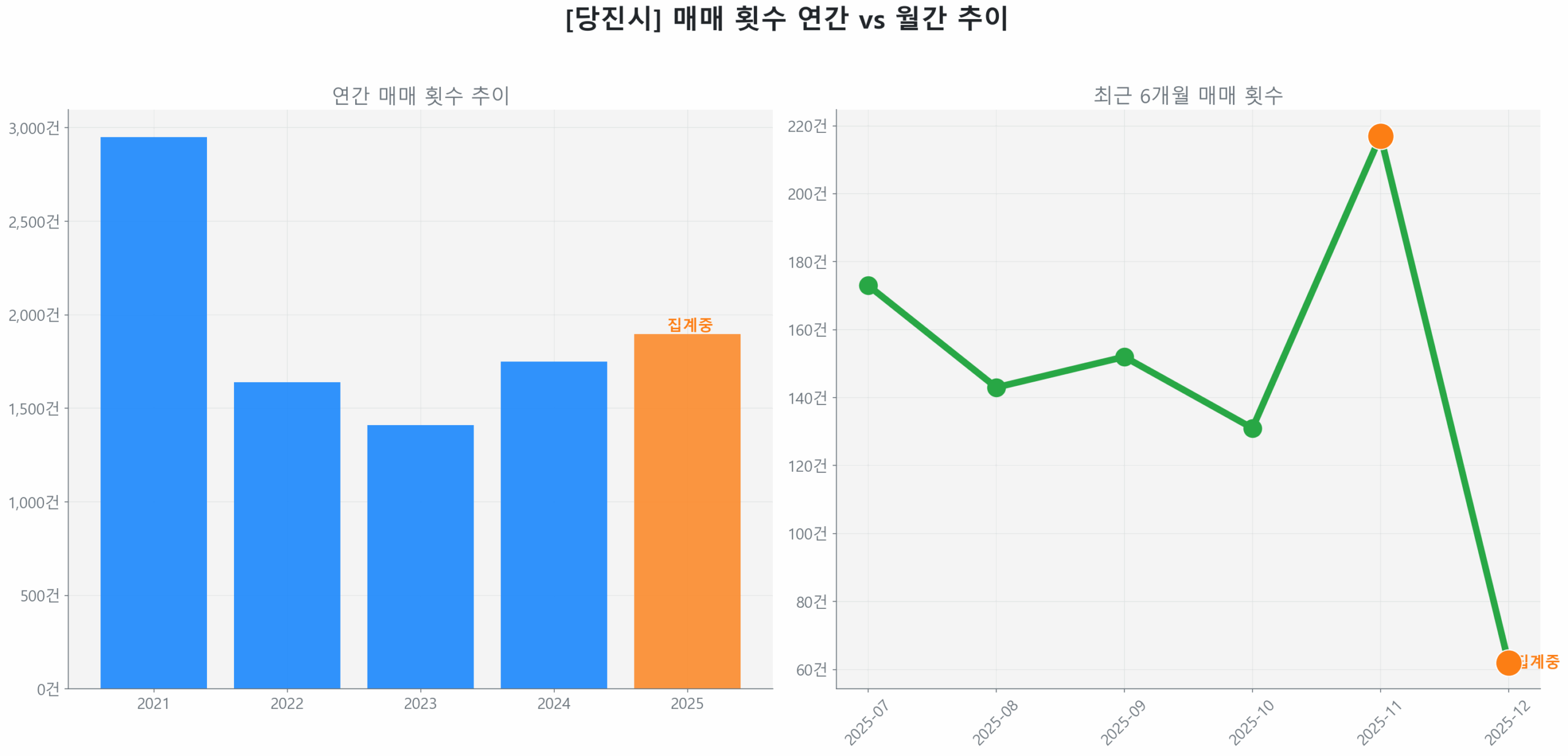 최근의 거래 흐름을 보면 이 시장의 에너지가 더욱 뚜렷해집니다. 지난 8월부터 10월까지 3개월간 당진시의 월평균 거래량은 약 142건을 기록하며 안정적인 흐름을 보였습니다.