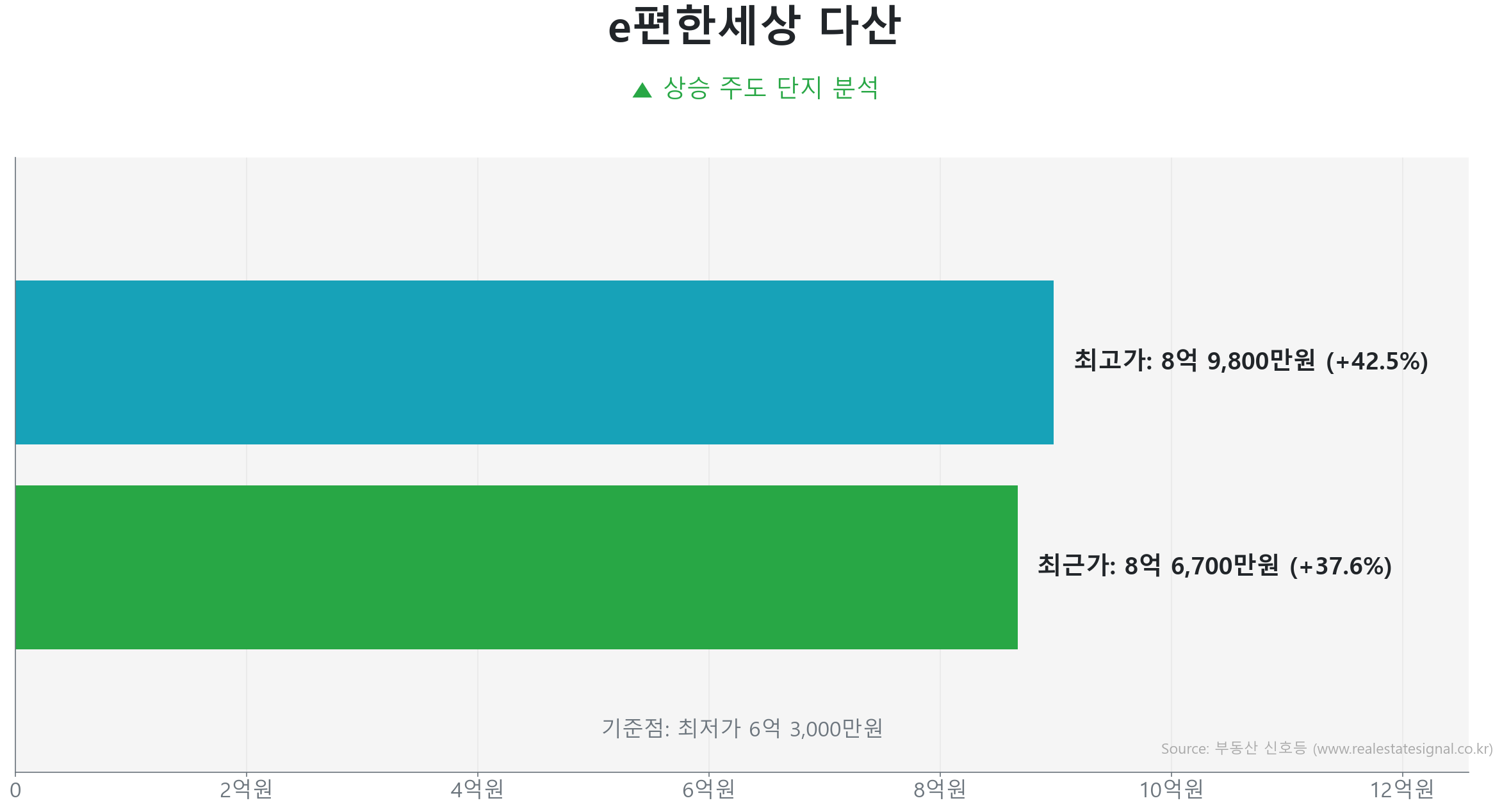 이러한 준신축 단지들의 견조한 상승 흐름은 다산동 e편한세상 다산 (74.0㎡)과 다산동 다산반도유보라메이플타운 (82.2㎡)에서도 명확히 확인됩니다.