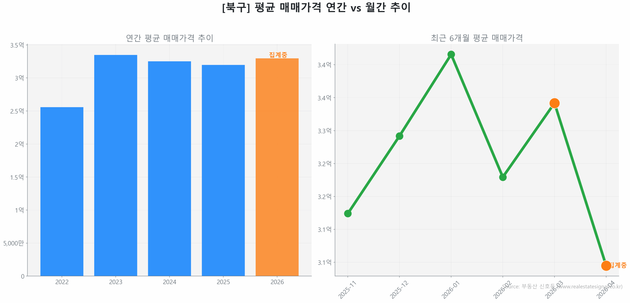 최근 3개월(2026년 1월~3월) 거래량은 19건으로 직전 분기 대비 보합(0.0%)을 유지했으나, 동기간 평균 매매가는 3억 1,533만 원에서 3억 4,466만 원으로 9.3% 상승했습니다. 이는 거래량 폭발보다는 소화되는 매물의 가격대가 상향 조정되는 전형적인 ‘가격 선행형 회복’ 양상을 띠고 있습니다.