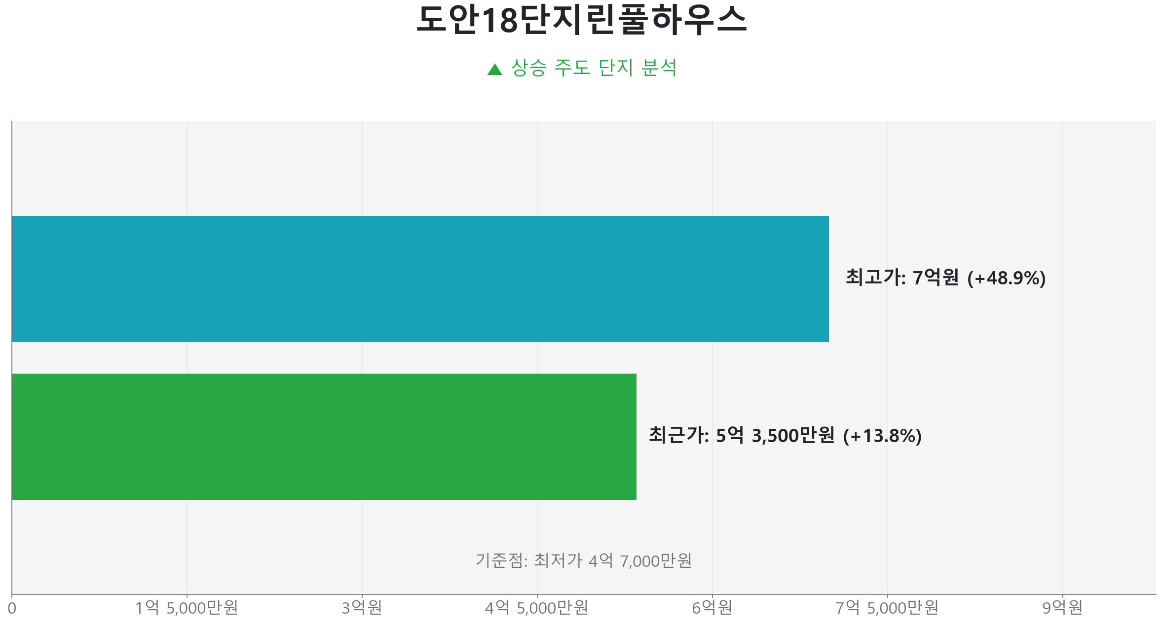 한편, 도안동 도안18단지린풀하우스 (84.0㎡ 타입), 1,691세대, 2014년 준공 단지는 숨고르기 장세 속에서 가격 조정이 뚜렷하게 나타나고 있으며, 2025년 12월 20층 매물이 6억 2,000만 원에 거래되었습니다.