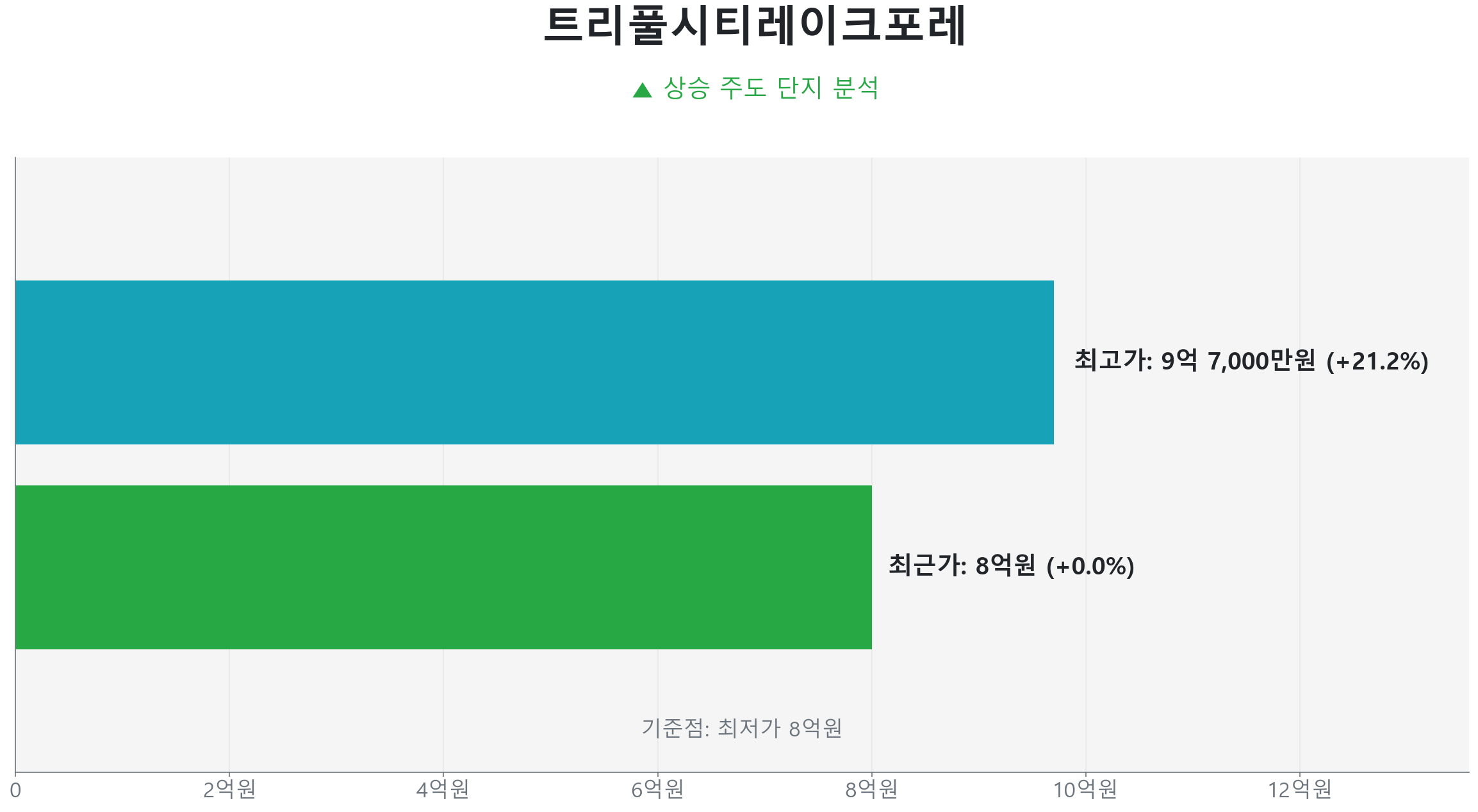 이러한 상승 흐름은 도안동 트리풀시티레이크포레 (97.8㎡ 타입), 1,762세대, 준공 5년차 신축 단지에서도 확인됩니다. 갑천 생태호수공원 조망이라는 독보적인 입지 가치로 시장을 주도하는 상승 흐름을 보였으나, 2025년 12월 1층 매물이 8억 원에 거래되며 로열층 대비 조정 양상을 보였습니다.