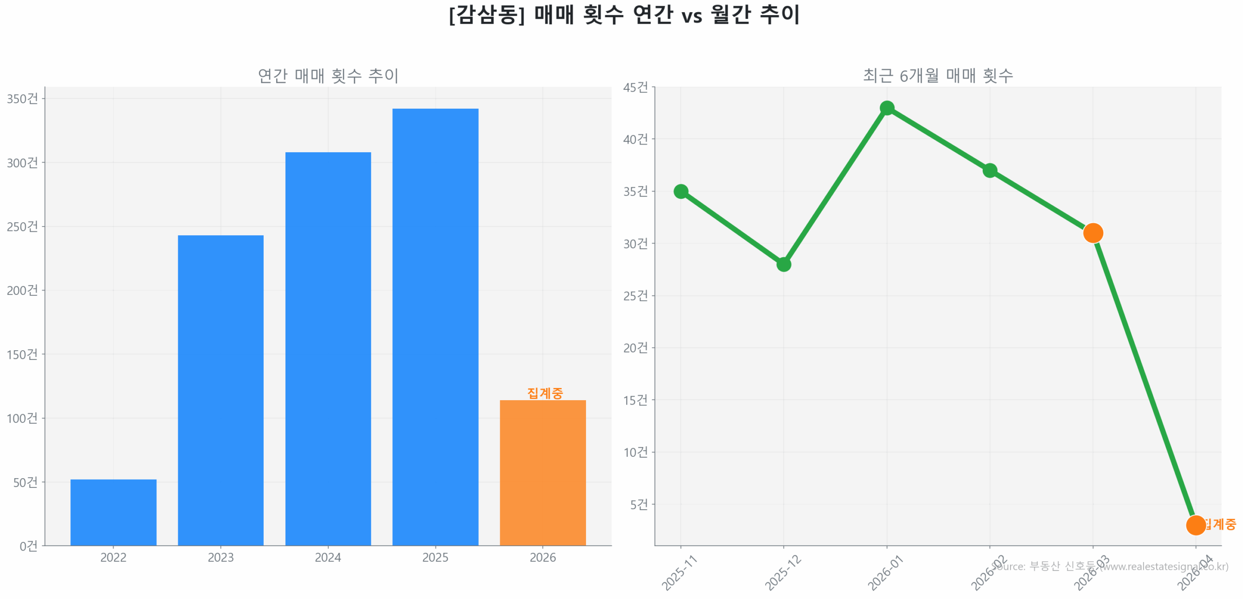 최근 감삼동 지역의 아파트 거래 분위기는 어떤가요?