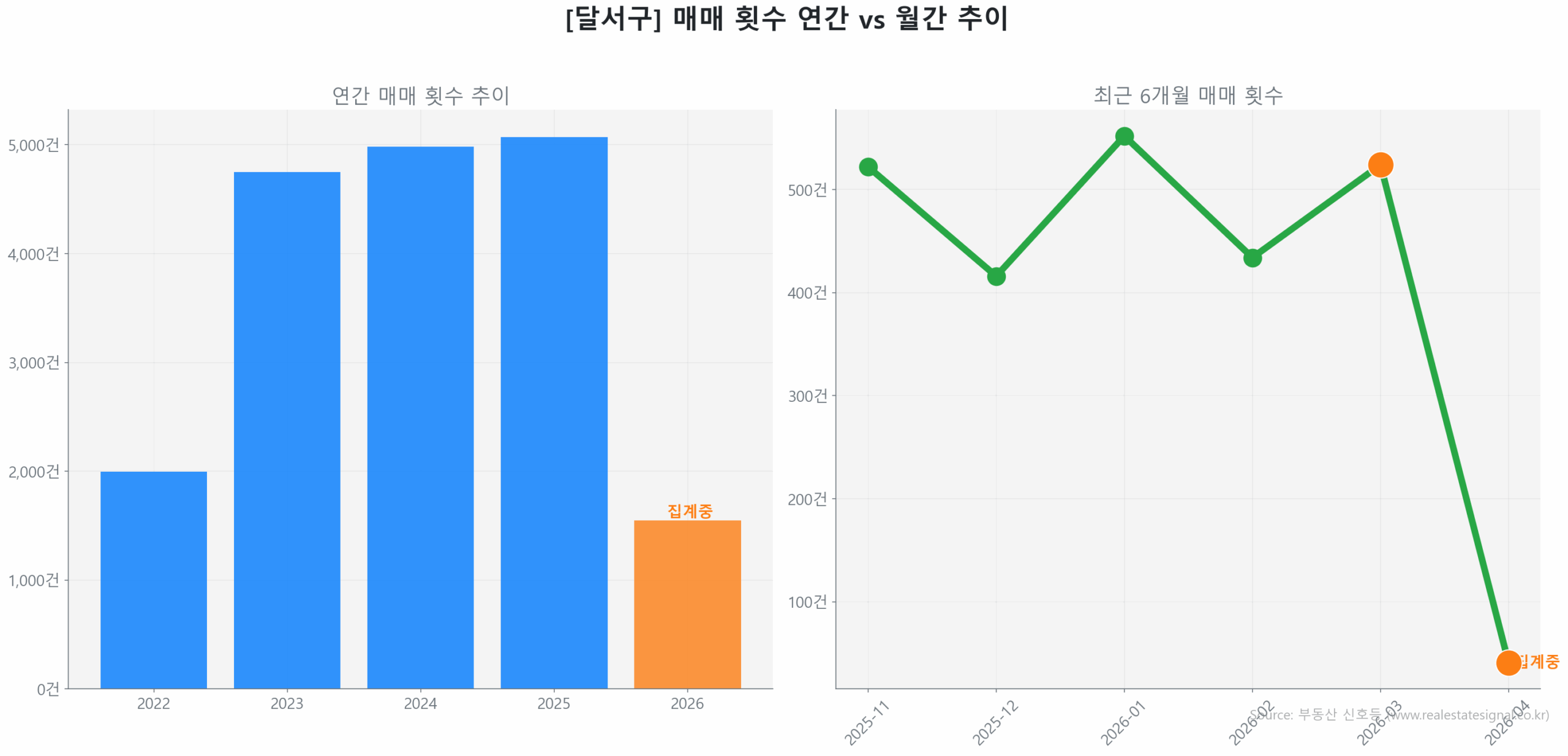 초고층 주상복합들이 새로운 스카이라인을 형성한 달서구 감삼동은 대구시청 신청사 건립이라는 행정 중심지로서의 정체성과 서대구역 복합환승센터 개발이라는 실질적 수요가 교차하는 지점입니다. 대규모 입주 물량이라는 하방 압력 속에서도 비규제 지역의 유연함을 바탕으로 ‘실질적 주거 가치’를 확보한 물건에만 선별적으로 접근하는 옥석 가리기 장세가 뚜렷합니다.