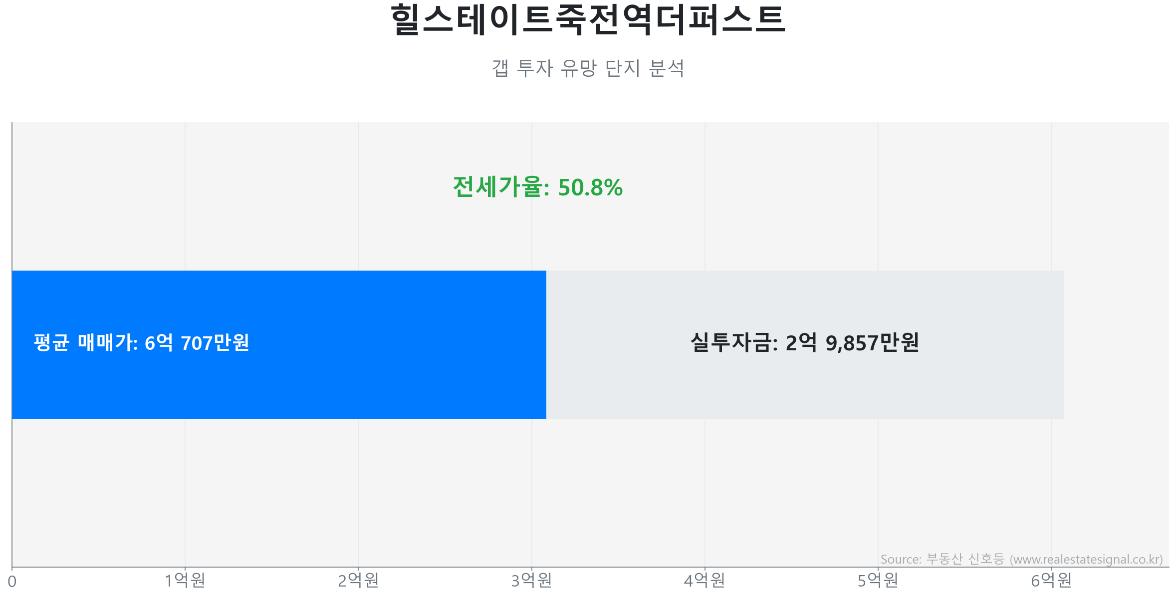 마지막으로 메이저 브랜드의 이름값이 돋보이는 준공 4년 차 감삼동 힐스테이트죽전역더퍼스트(84.0㎡) 역시 우수한 전세가 방어력을 바탕으로 실투자금 약 2억 9,857만 원에 진입 가능합니다(전세가율 50.8%).