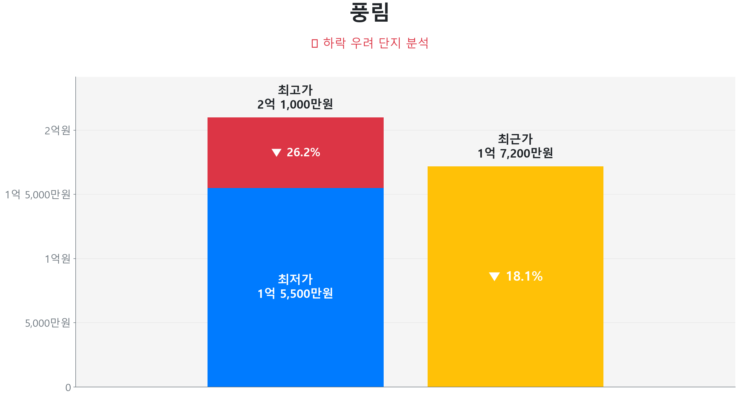 다음으로 살펴볼 곳은 금천동 풍림 (136.5㎡ 타입)입니다. 327세대의 아담한 단지이자 준공 33년차 구축 단지인 이곳은 현재 가격 조정으로 매수 기회가 발생한 구간으로 평가됩니다.