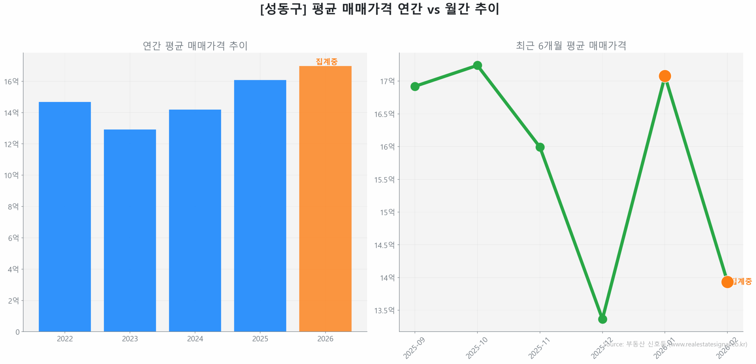 성동구 연간 평균 매매가 추이 막대 그래프