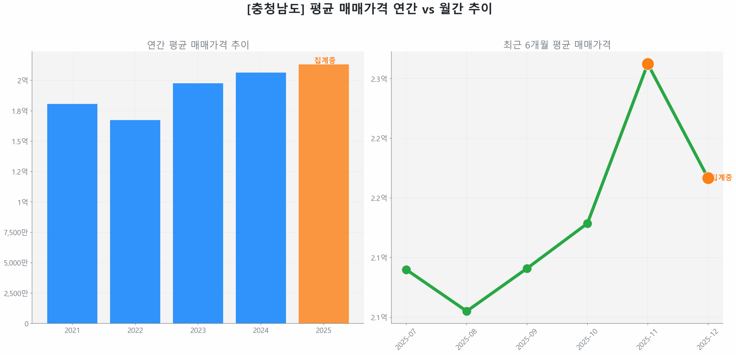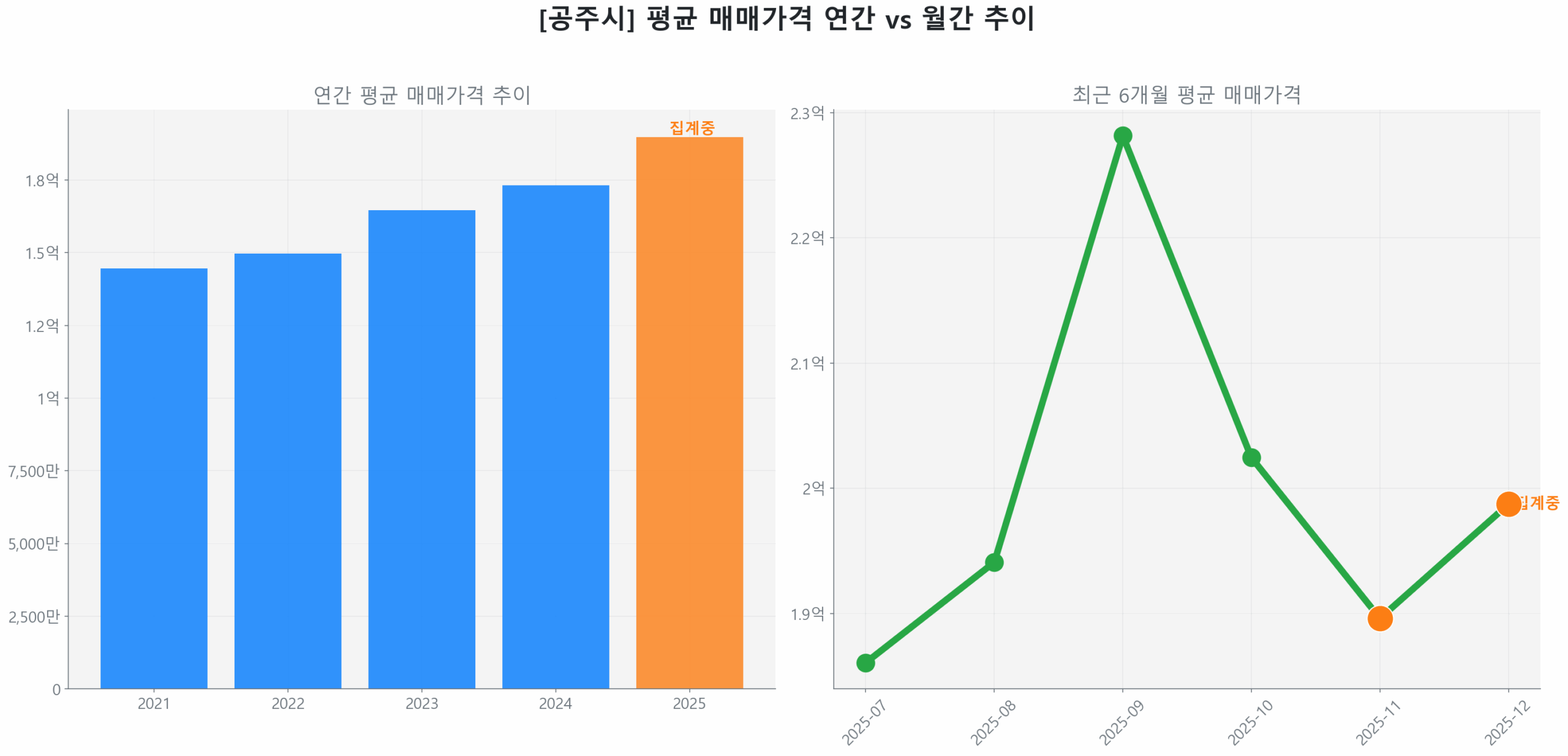 역사적 바닥을 지나 에너지를 응축하는 초기 회복 단계에 진입했습니다. 2025년 11월 25일 확정치 기준, 공주 아파트 시장은 2025년 11월 저점(1억 8,961만 원)을 확인했습니다.