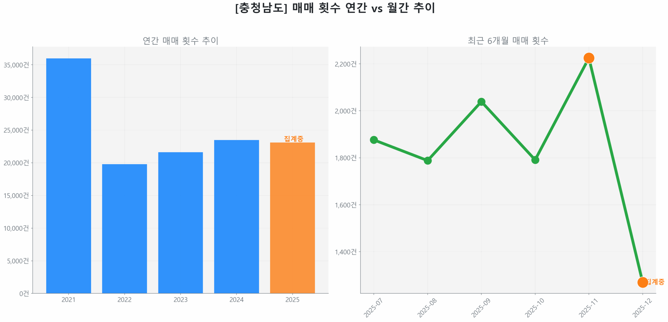 충청남도 연간 매매 거래량 추이 막대 그래프