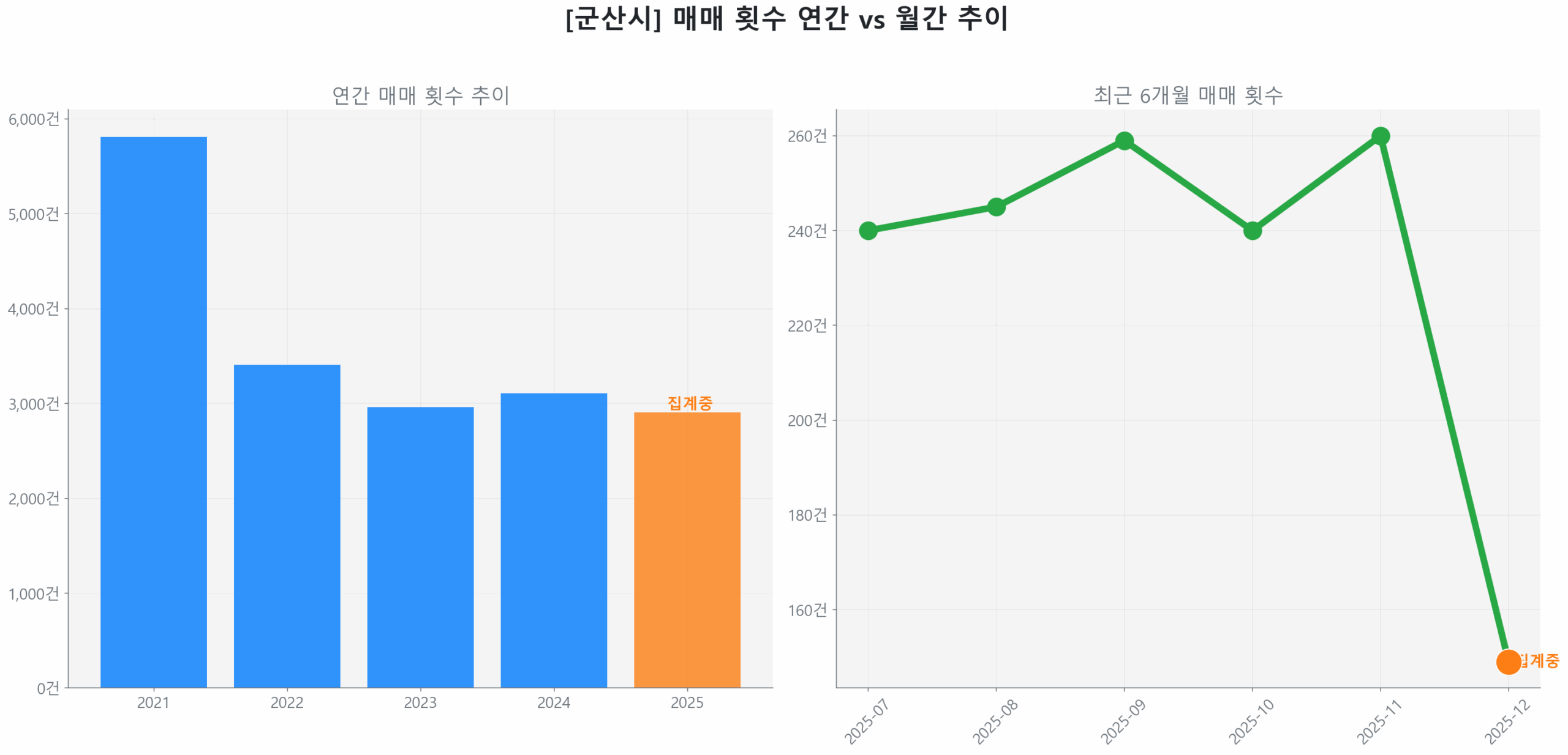 데이터가 증명하듯 군산 시장은 산업 호재와 신축 선호가 이끄는 회복세와, 규제 및 인프라 지연이 유발한 구축의 침체가 극명하게 엇갈리고 있습니다. 결국 대체 불가능한 입지를 증명해내는 단지만이 진정한 가치 회복의 기회를 잡게 될 것입니다.