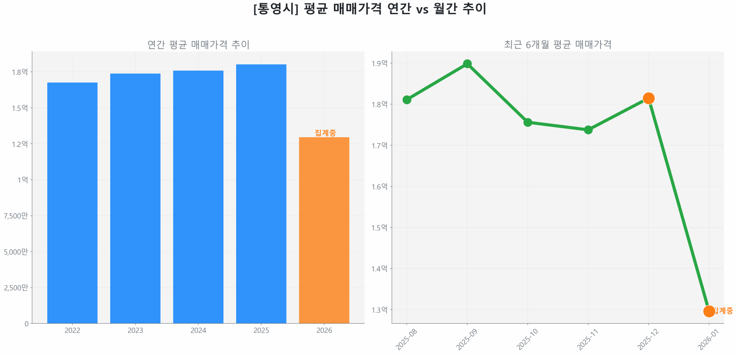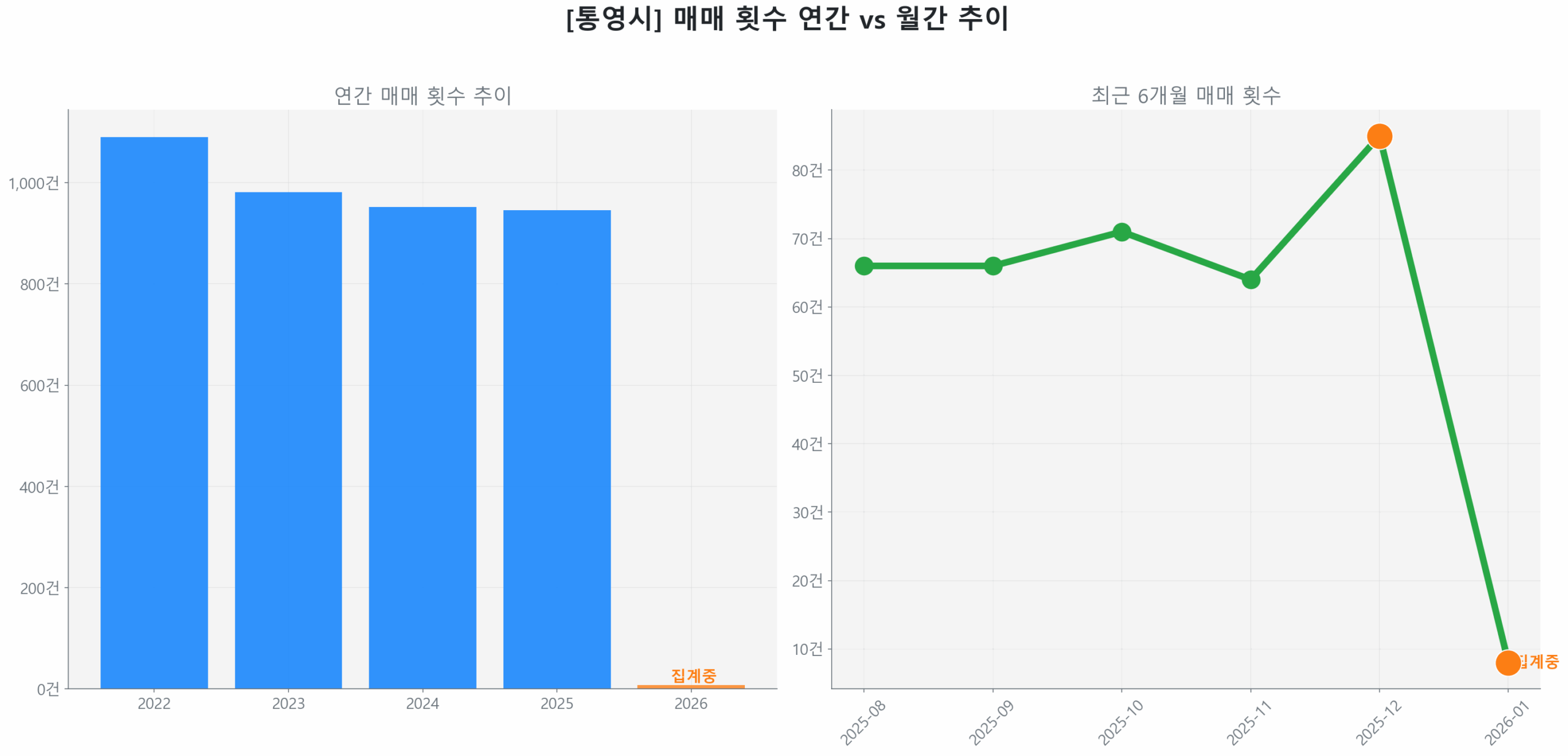 최신 실거래 데이터에 따르면, 지난 2025년 12월 거래량이 전월 대비 40.9% 급등하며 시장 활기가 뚜렷하게 증가했습니다. 2026년 1월은 현재 집계 중이지만, 전반적으로 거래량은 상승세를 보이고 있으나 평균 가격은 보합세를 유지하며 관망세가 짙은 분위기입니다.