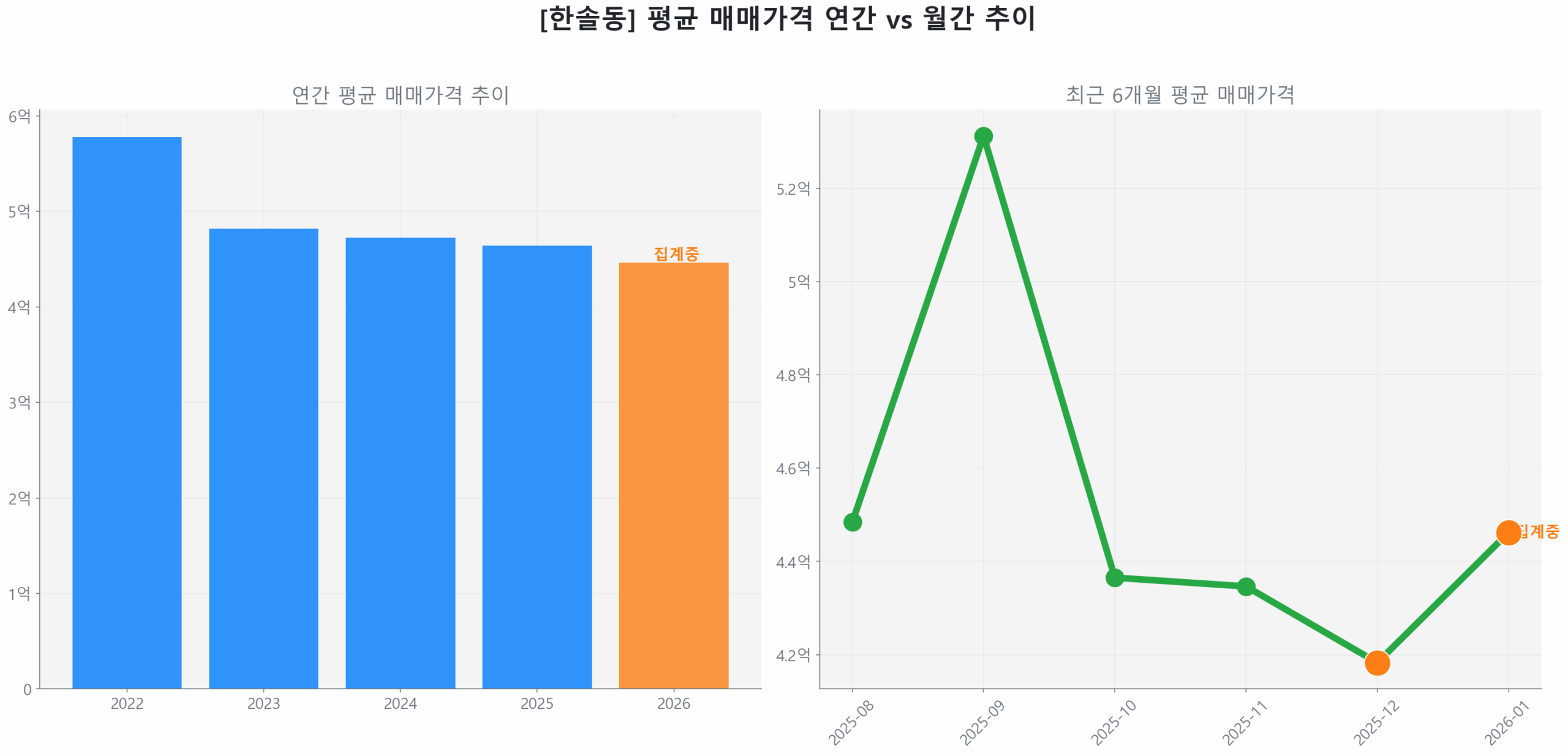 한솔동 아파트 시장은 2026년 1월 기준, 저점 대비 4.5% 반등하며 선별적 회복 국면에 진입했습니다. 같은 동네에서 71% 폭등과 31% 폭락이 공존하는 이유를 최신 실거래 데이터로 분석하고, 소액 투자 기회를 공개합니다.