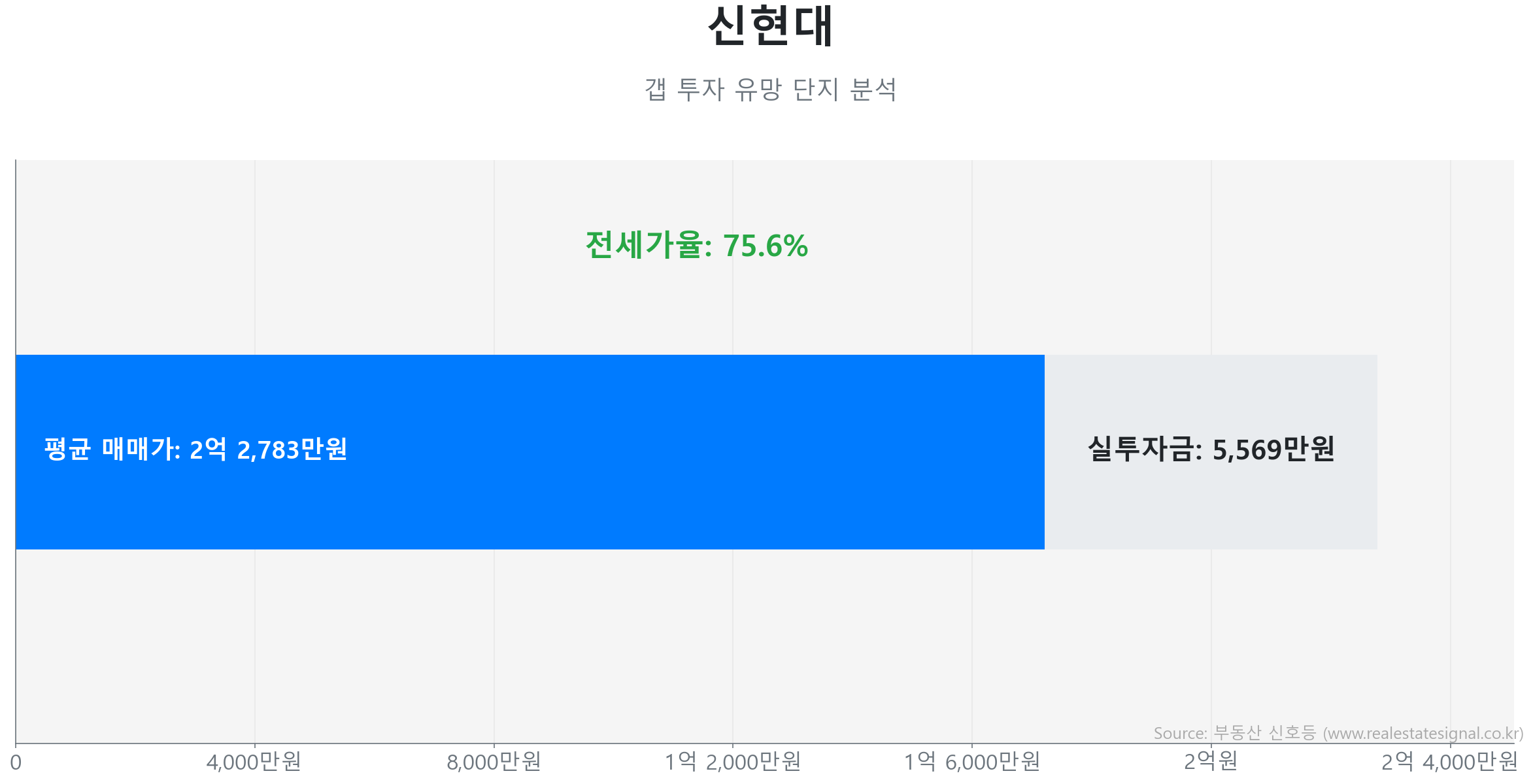 마지막으로 가재울역 역세권 입지를 갖춘 신현대(59.0㎡) 역시 실투자금 약 5,569만 원으로 안정적인 임차 수요를 곁들인 장기적 가치를 보여주고 있습니다(전세가율 75.6%).
