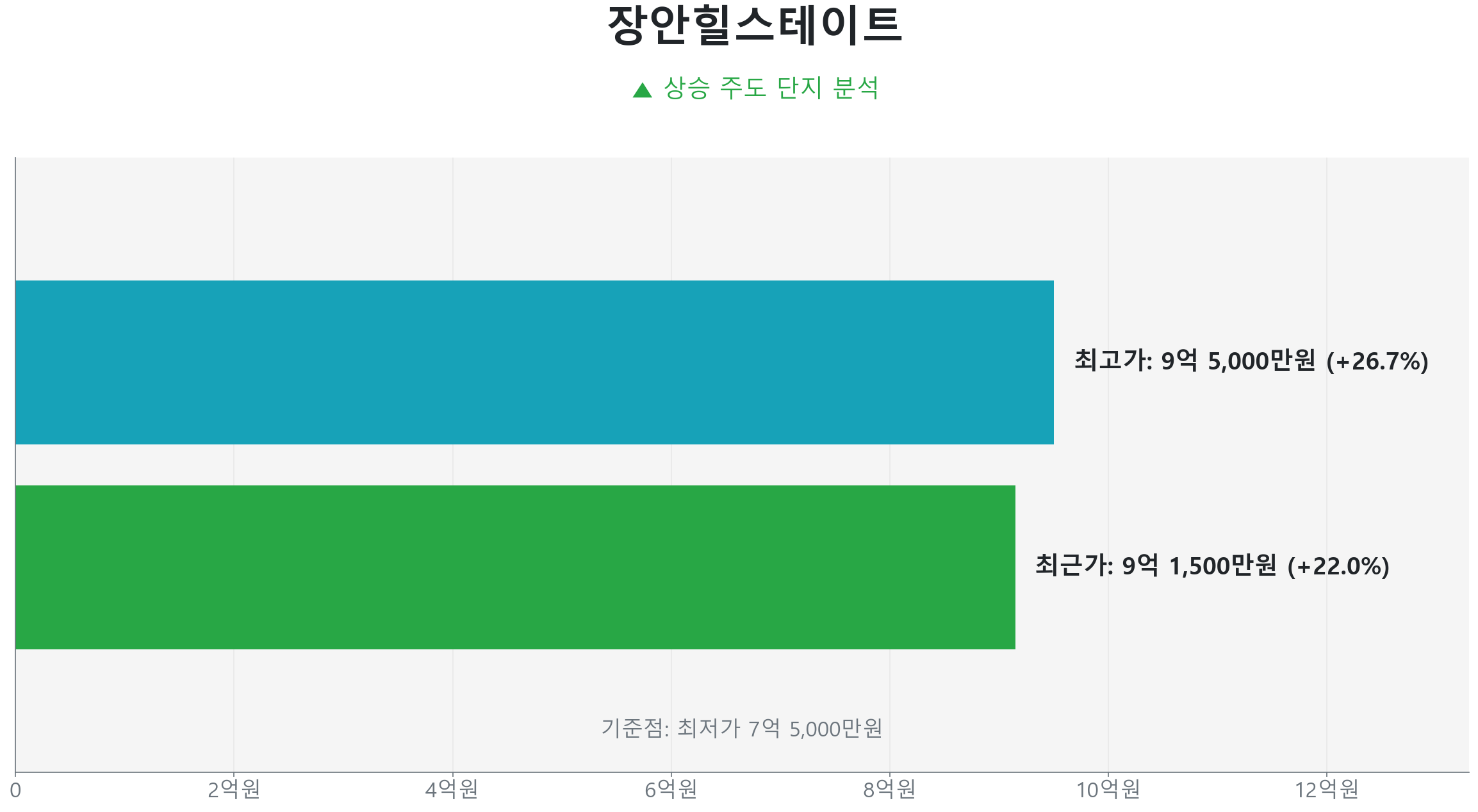 • 상승 주도 단지(장안힐스테이트)는 탄탄한 수요로 22% 반등한 반면, 일부 구축은 23% 이상 하락했습니다.
