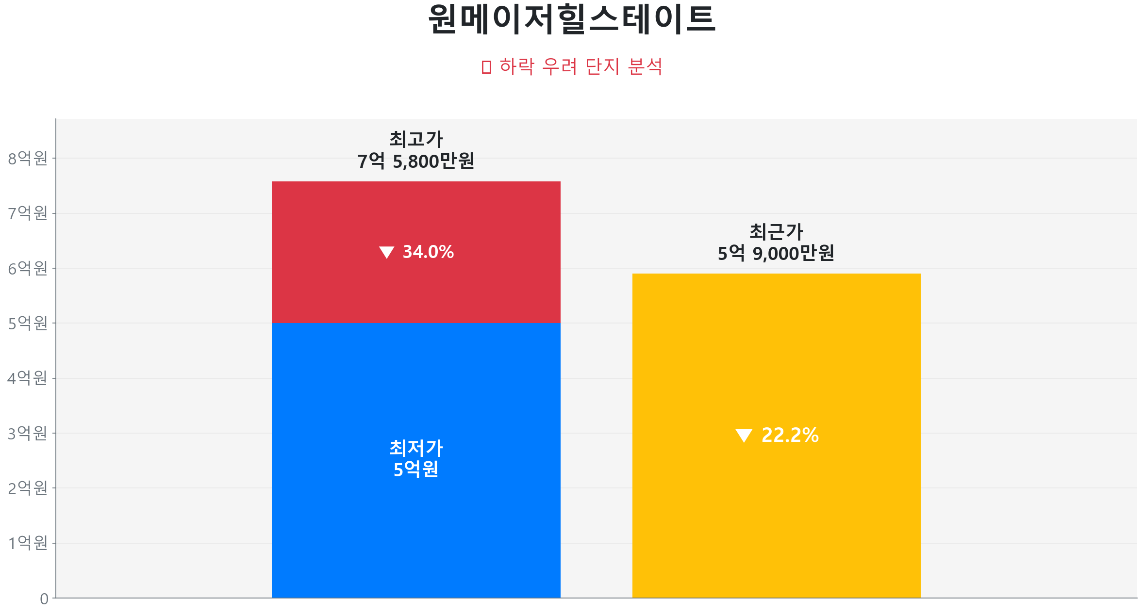 원메이저힐스테이트는 2018년 준공된 1,052세대 대단지로, 모산공원과 인접한 숲세권 입지를 자랑하며 율하2지구 내 평지에 위치해 쾌적하고 조용한 주거 환경을 제공합니다. 준신축 단지로서 관리 상태가 양호하고, 전고점 대비 23.09% 하락 후 12.47% 반등하며 회복 탄력성이 좋으며 호가 지지선이 견고하게 형성되어 있습니다.