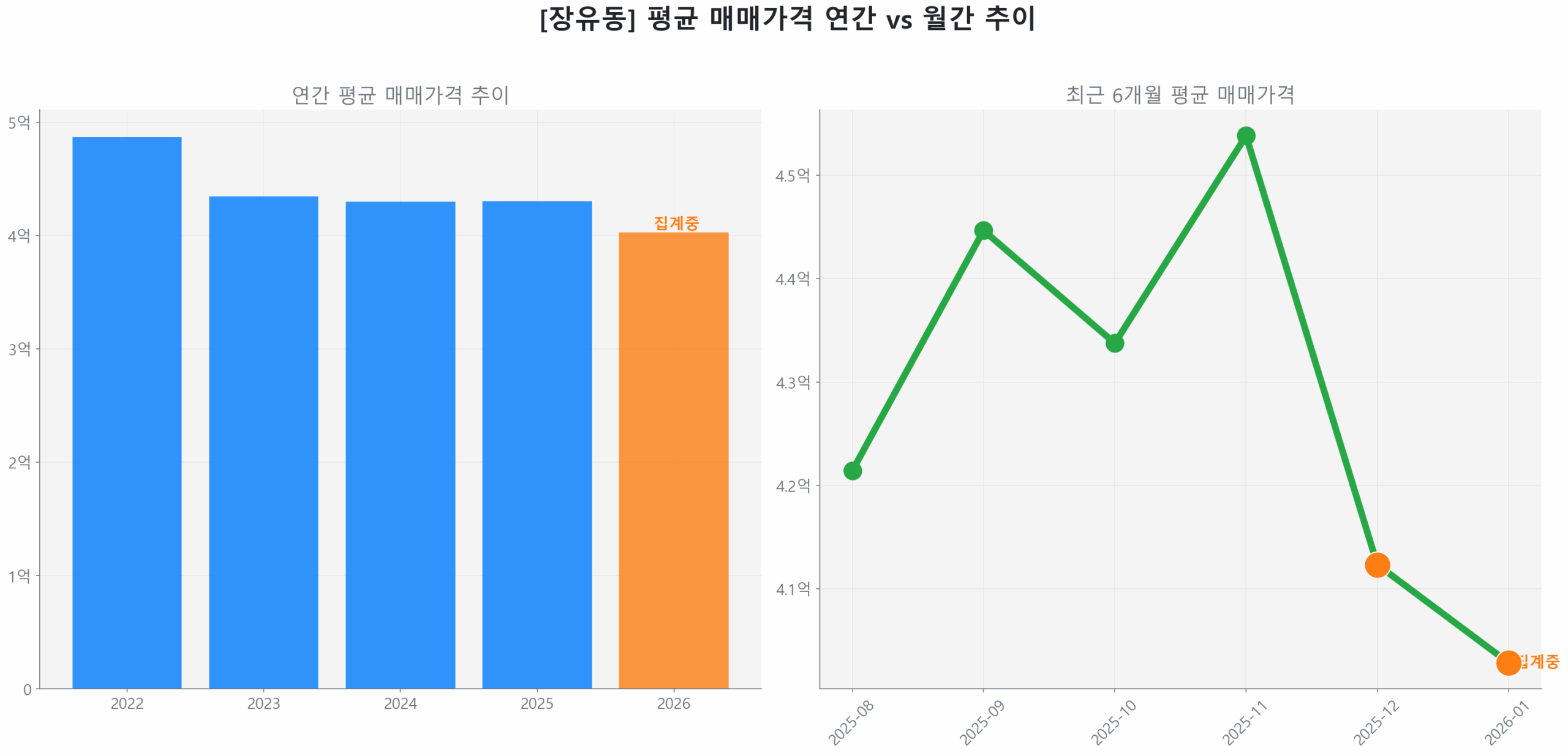 종합적으로 장유동 시장은 구축 아파트 중심의 안정적 시장 양상 속에서 탄력적인 수요 반응과 개선된 투자 환경을 바탕으로 선별적 회복 초기 국면에 진입했으나, Z-Score 0.69는 아직 강력한 추세 전환으로 보기 어렵다는 점을 시사합니다.
