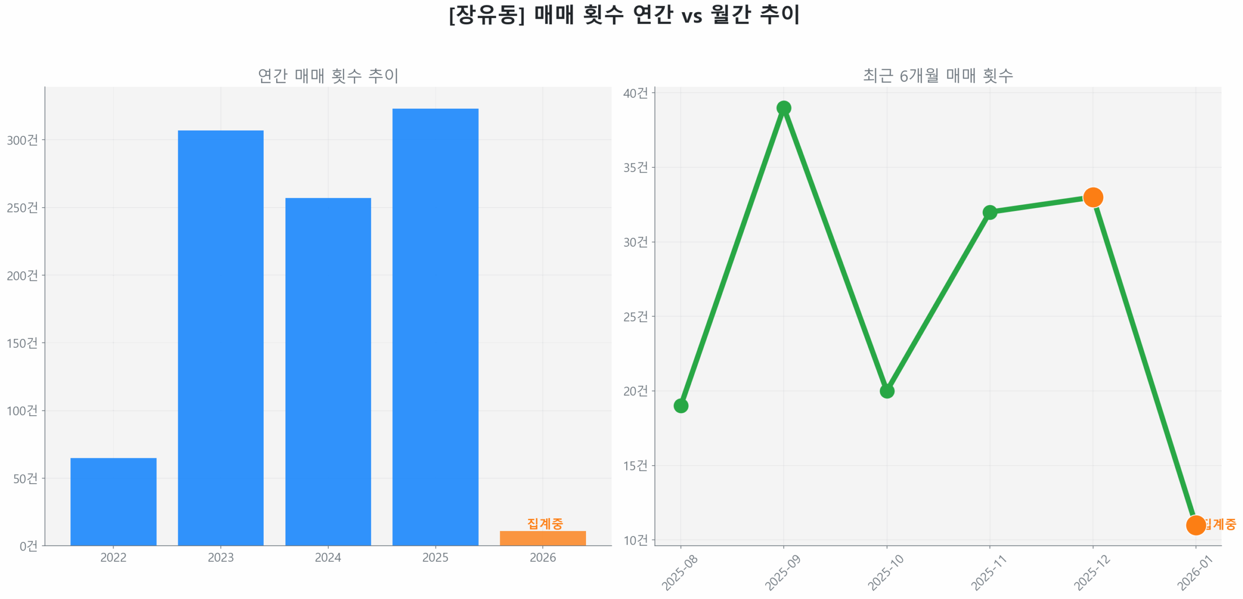 이처럼 활발한 거래량과 견고한 가격 흐름은 수도권 규제 강화 속 비규제 지역인 장유동이 투자자들에게 매력적인 대안으로 부상하고 있음을 명확히 보여줍니다.