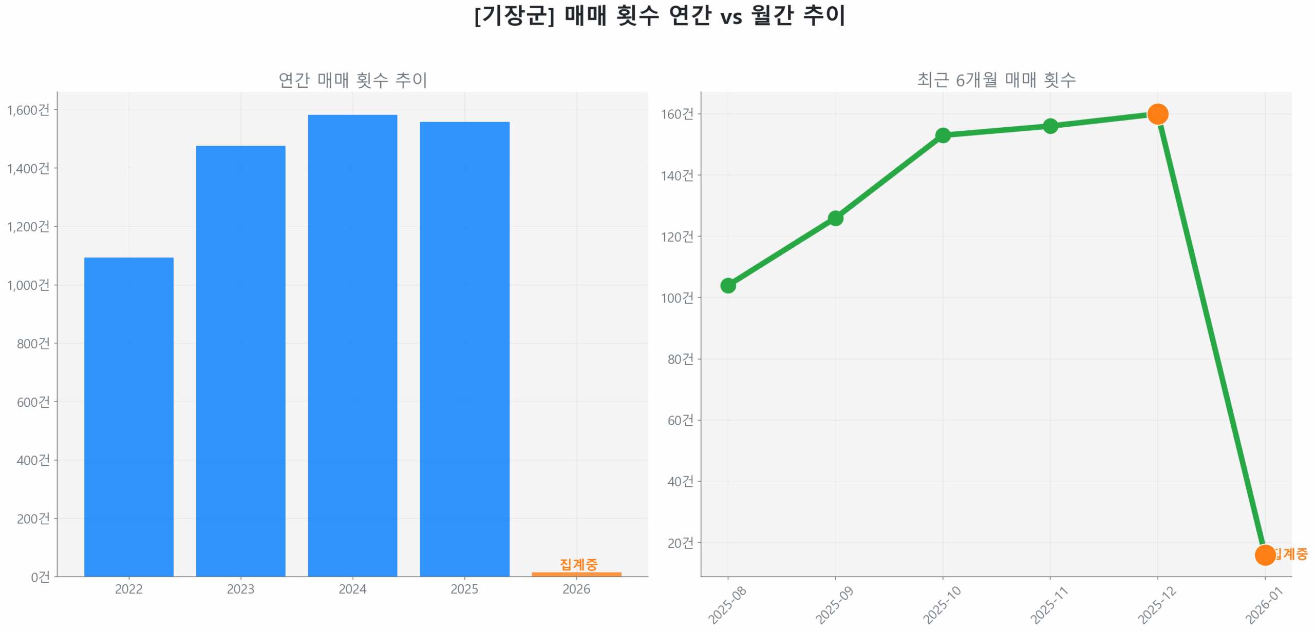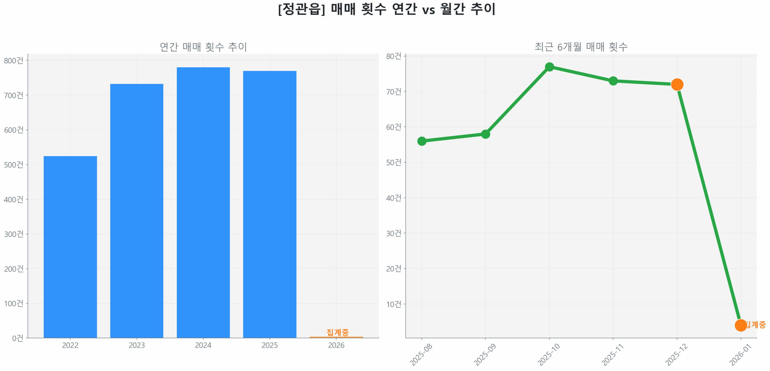 현재 상승 동력은 신축이 아닌 구축 아파트 중심(신축 거래량 비중 0.0%)으로, 시장 전반으로 에너지가 확산되기보다는 특정 세그먼트에 집중된 선별적 회복 양상입니다.