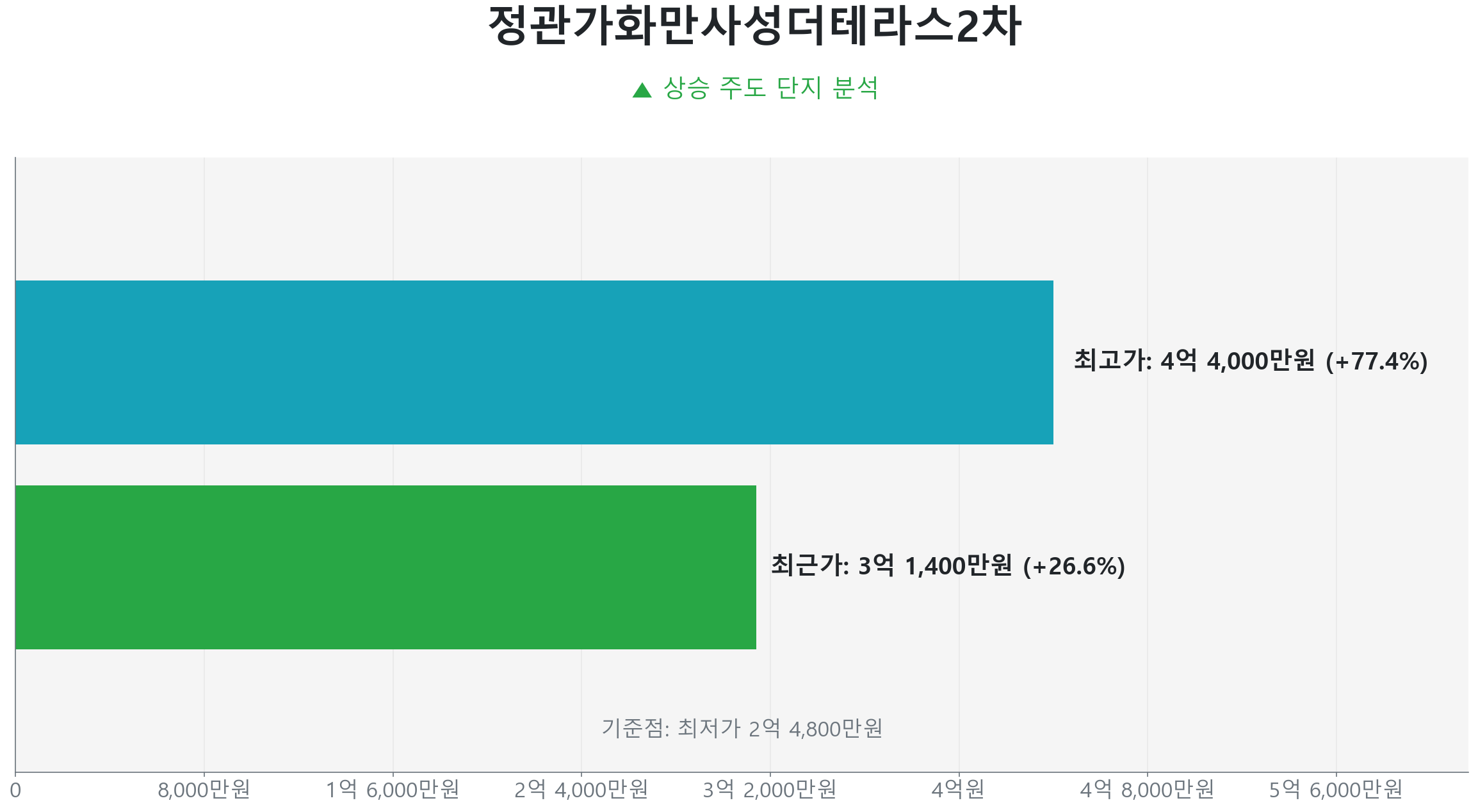 가장 먼저 주목할 곳은 정관읍 정관가화만사성더테라스2차 (59.0㎡ 타입)입니다. 396세대의 아담한 단지이자 준공 8년차 준신축 아파트인 이곳은 정관 내에서 가장 높은 회복 탄력성을 보이고 있습니다.