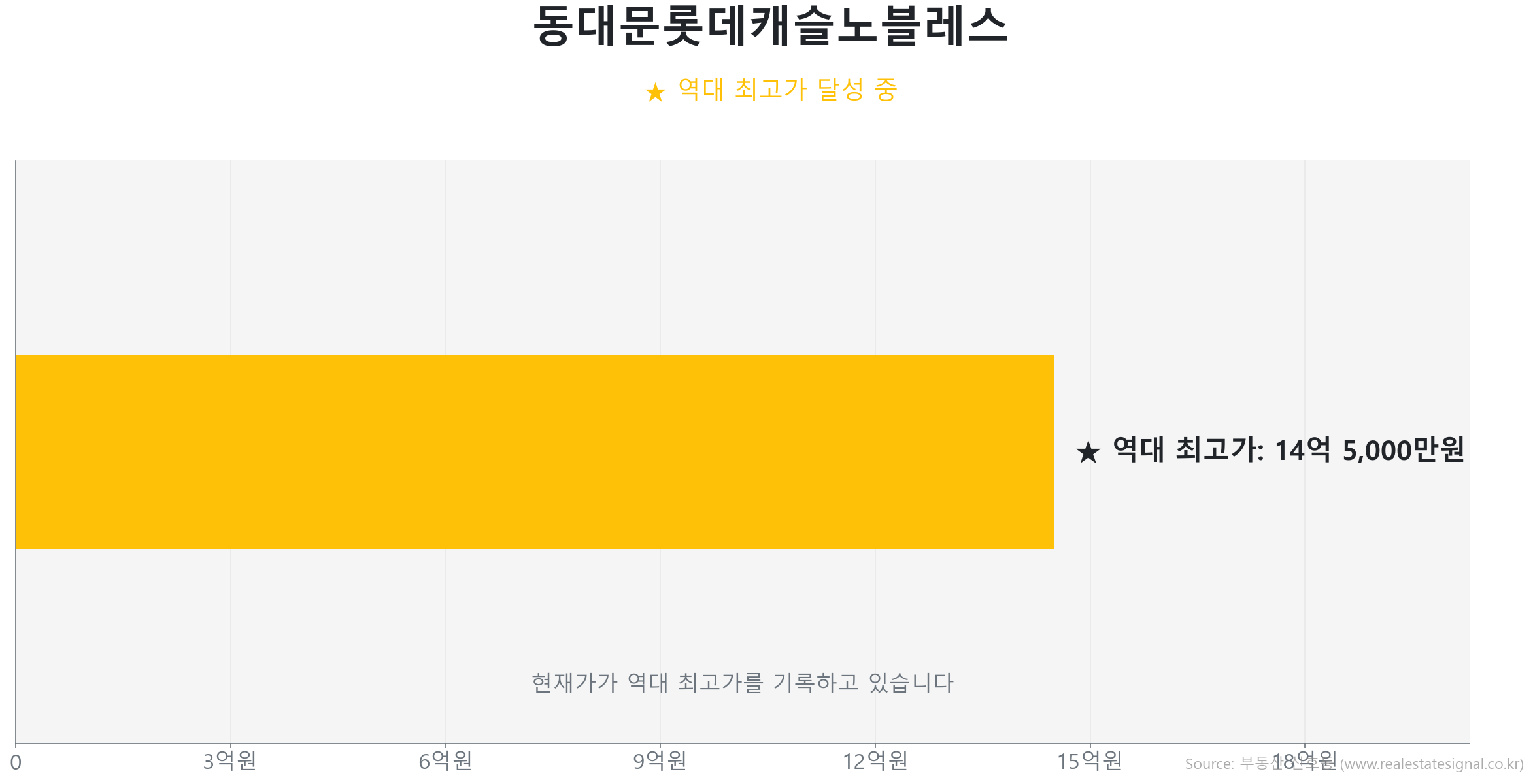 이어지는 상승세는 동대문 롯데캐슬 노블레스 (59.0㎡)에서도 확인됩니다. 584세대의 7년 차 준신축 단지로 청량리역 초역세권이라는 입지 가치를 지닌 이곳은, GTX 호재에 힘입어 2025년 12월 6층 매물이 14억 5,000만 원에 거래되며 전년 대비 6.7% 상승한 신고가를 기록했습니다.