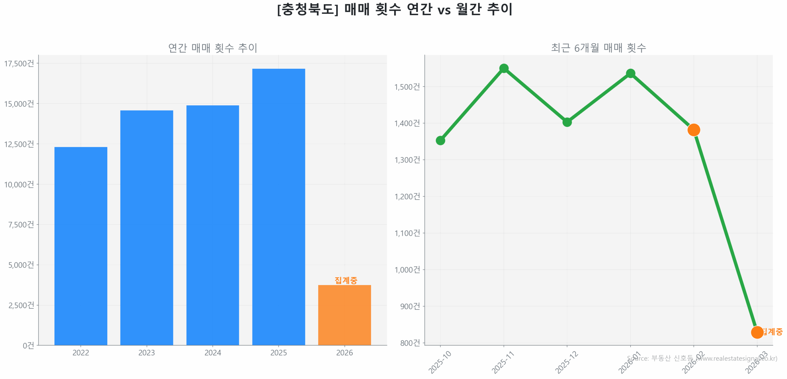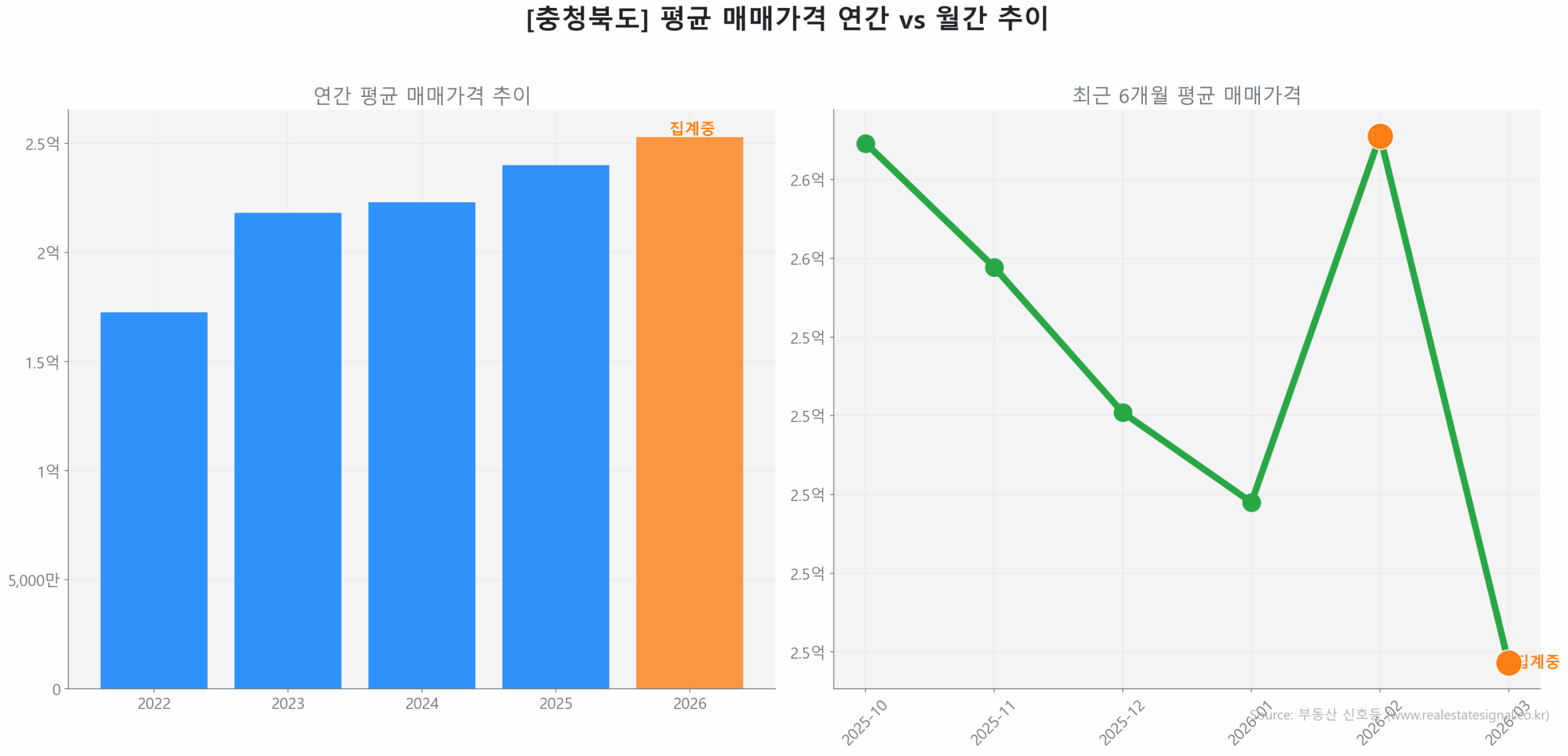현재 증평군 아파트 시세는 저점 대비 74.9% 반등하며 본격적인 회복 국면에 진입했습니다. 매수 가속도는 전년 대비 8.2% 증가하며 가팔라지는 양극화 양상이 뚜렷하게 관측됩니다.