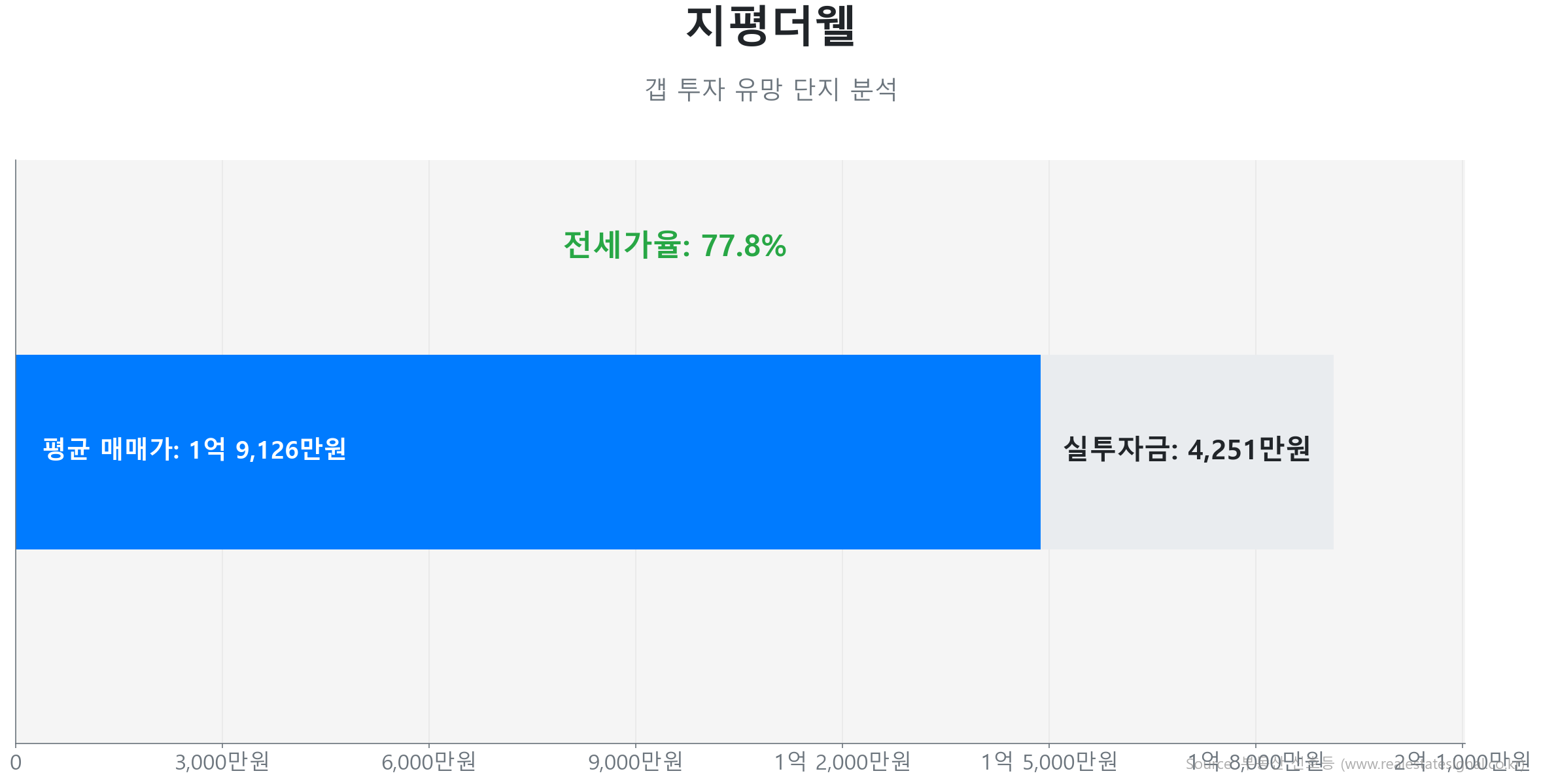 마지막으로 증평읍 지평더웰 (59.0㎡) 역시 전세가율 77.8%, 실투자금 4,251만 원 수준으로, 1인 가구가 급증하는 증평 시장의 인구 구조 변화 속에서 소형 평형이라는 독보적 희소성을 무기로 뛰어난 환금성과 유동성을 자랑하는 매력적인 투자처입니다.