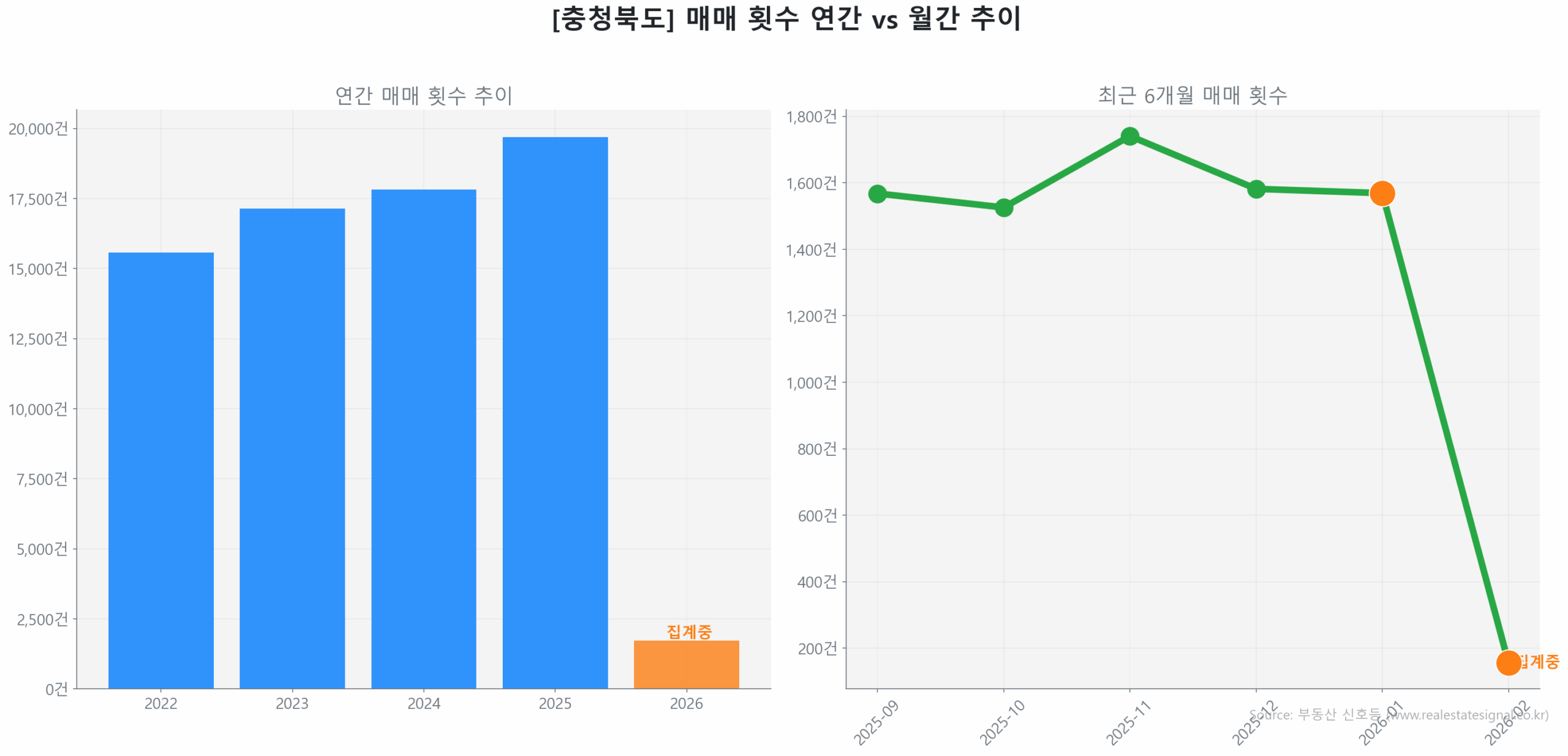충청북도 연간 매매 거래량 추이 막대 그래프