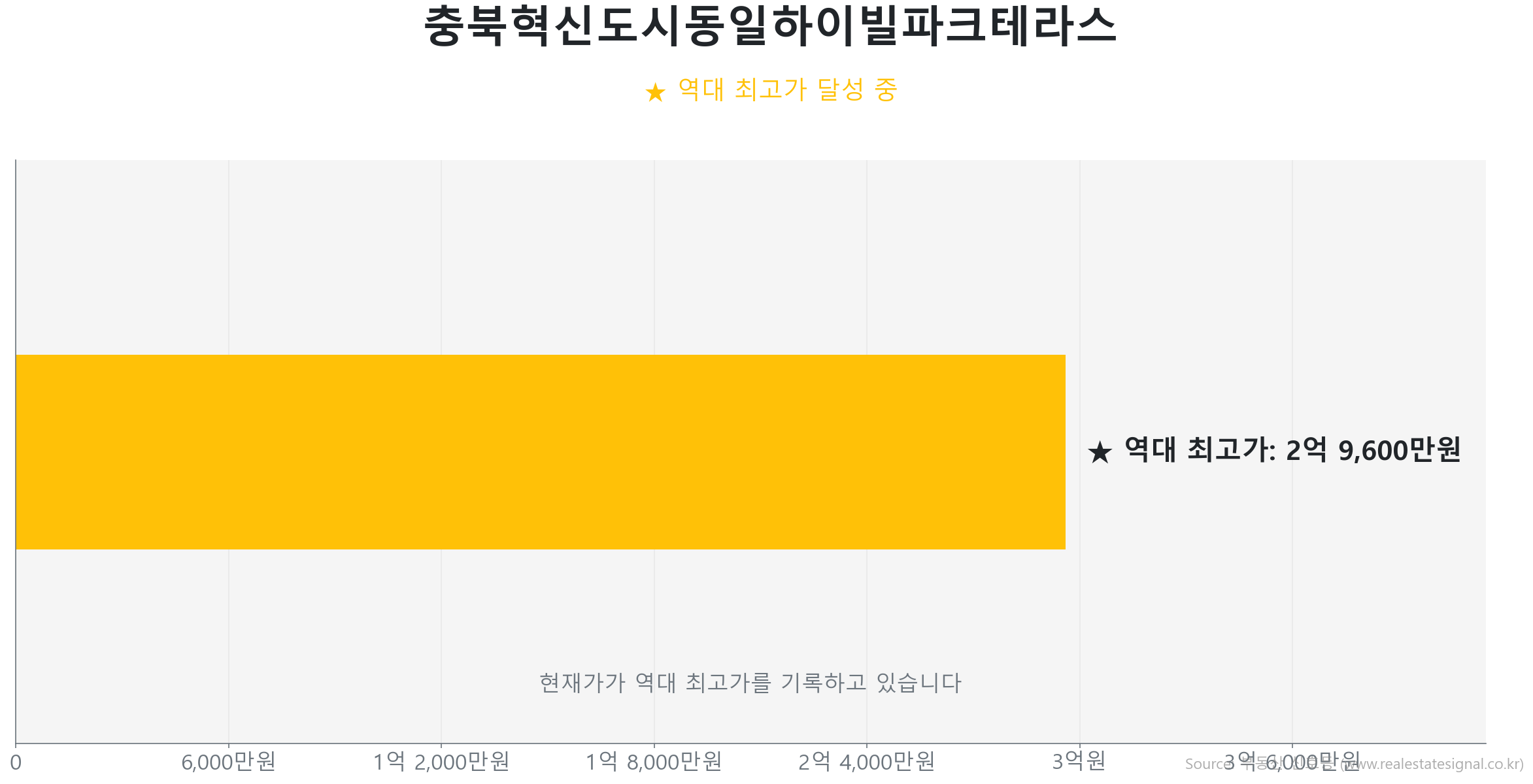 • 충북혁신도시 신축은 신고가를 경신 중이지만, 일부 구축은 고점 대비 40% 이상 하락했습니다.