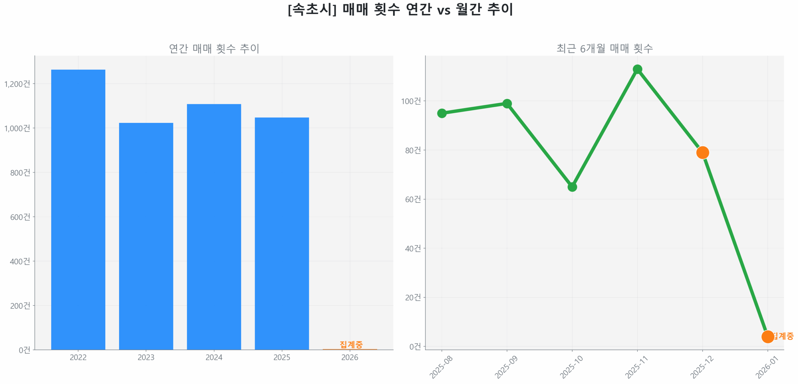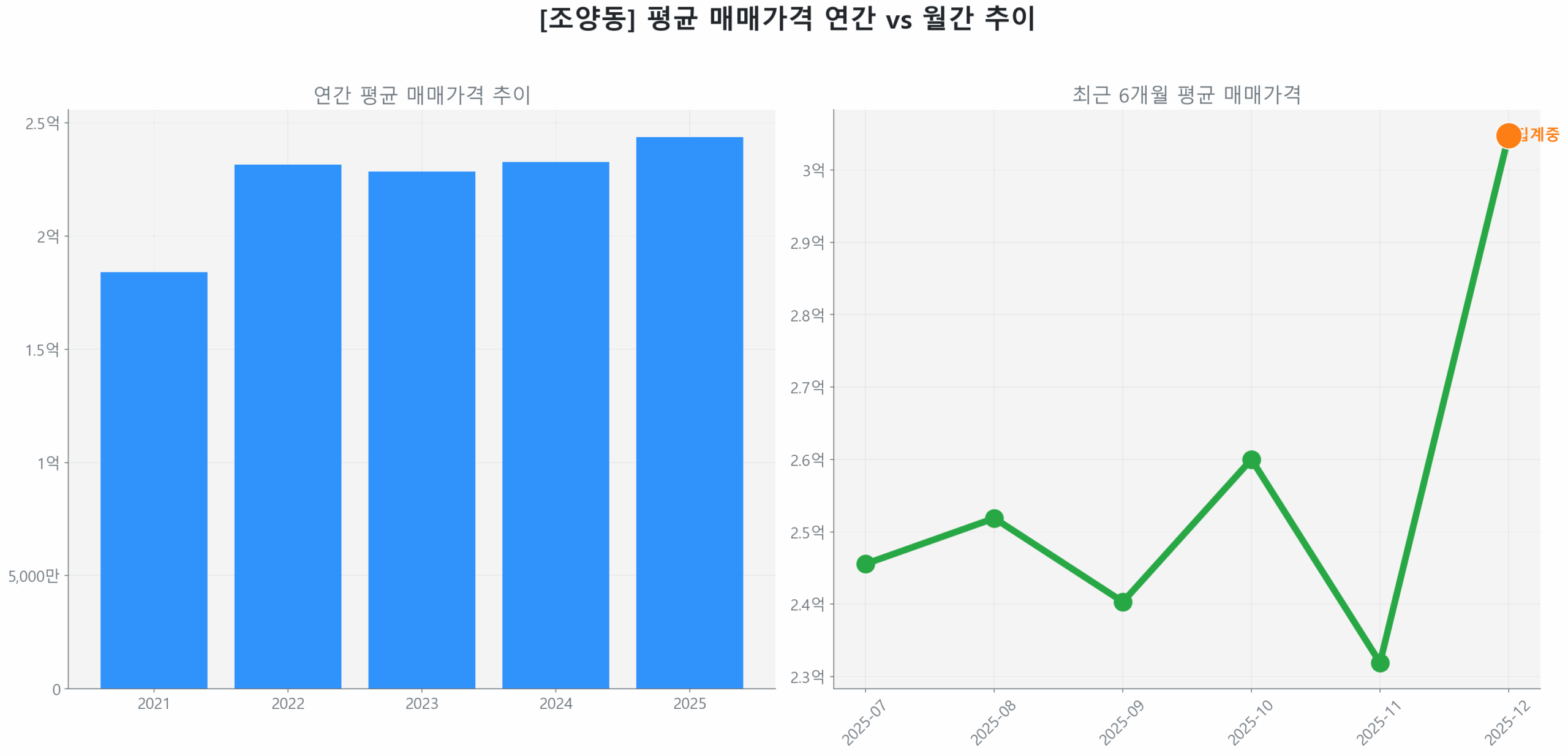 속초 조양동 부동산 투자 시장은 2025년 12월 8일 확정치 기준, 역사적 저점 대비 88.02% 반등하며 회복 국면에 진입했으며, 전년 동기 대비 매수 가속도 7.83%를 기록하며 시장 에너지가 가속화되고 있습니다. 2022년 12월 최고점(32,073만 원)과 2025년 1월 최저점(18,701만 원) 사이 하락폭의 88.02%를 회복하며 역사적 고점에 근접한 궤도에 올랐습니다.