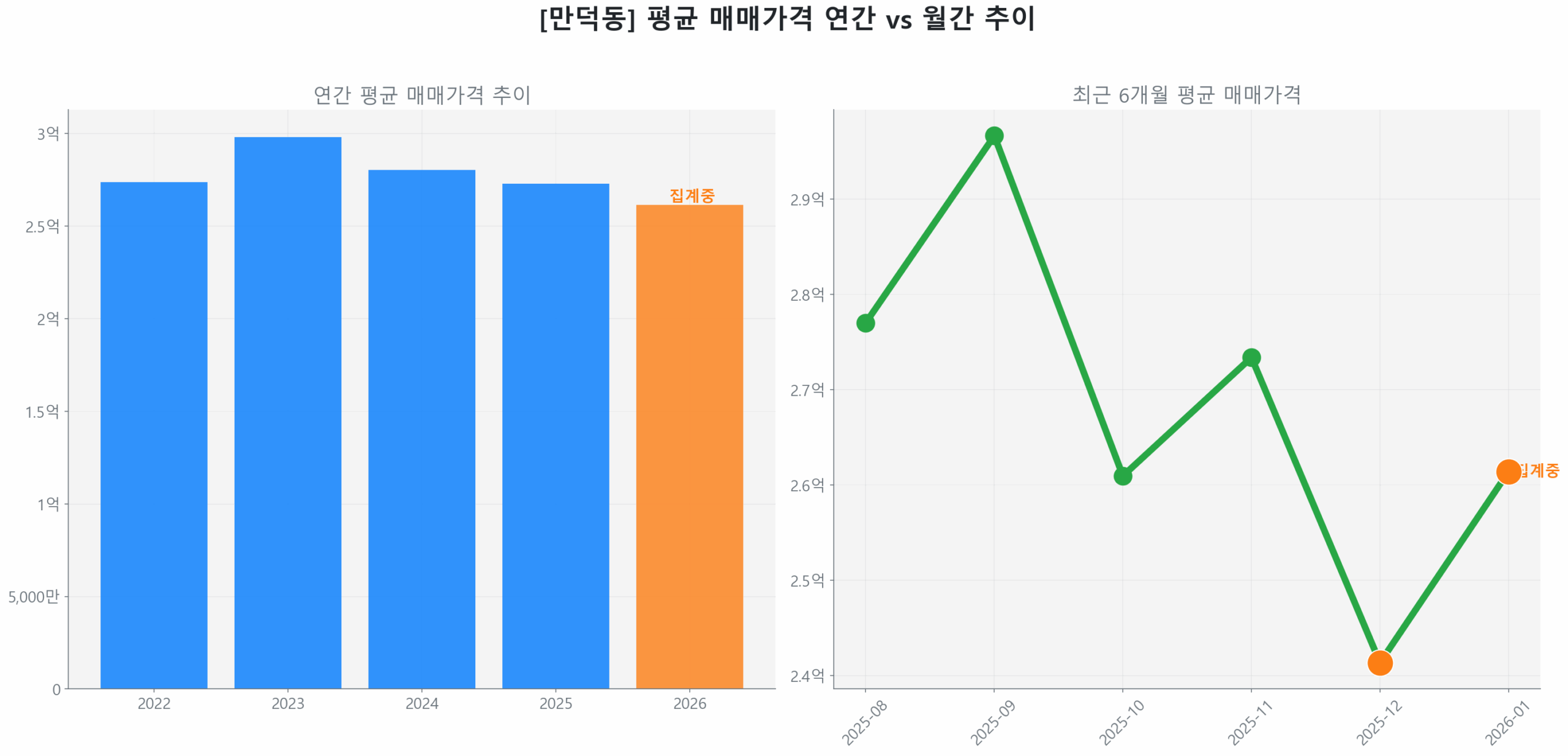 이처럼 리스크와 기회가 공존하는 만덕동 시장에서, 실제 개별 단지들의 성적표는 어떠할까요? 지금부터 만덕동이 맞이한 역사적인 전환점과 함께, 주요 단지들의 가격 및 거래량 데이터를 통해 시장의 현주소를 면밀히 분석해 보겠습니다.
