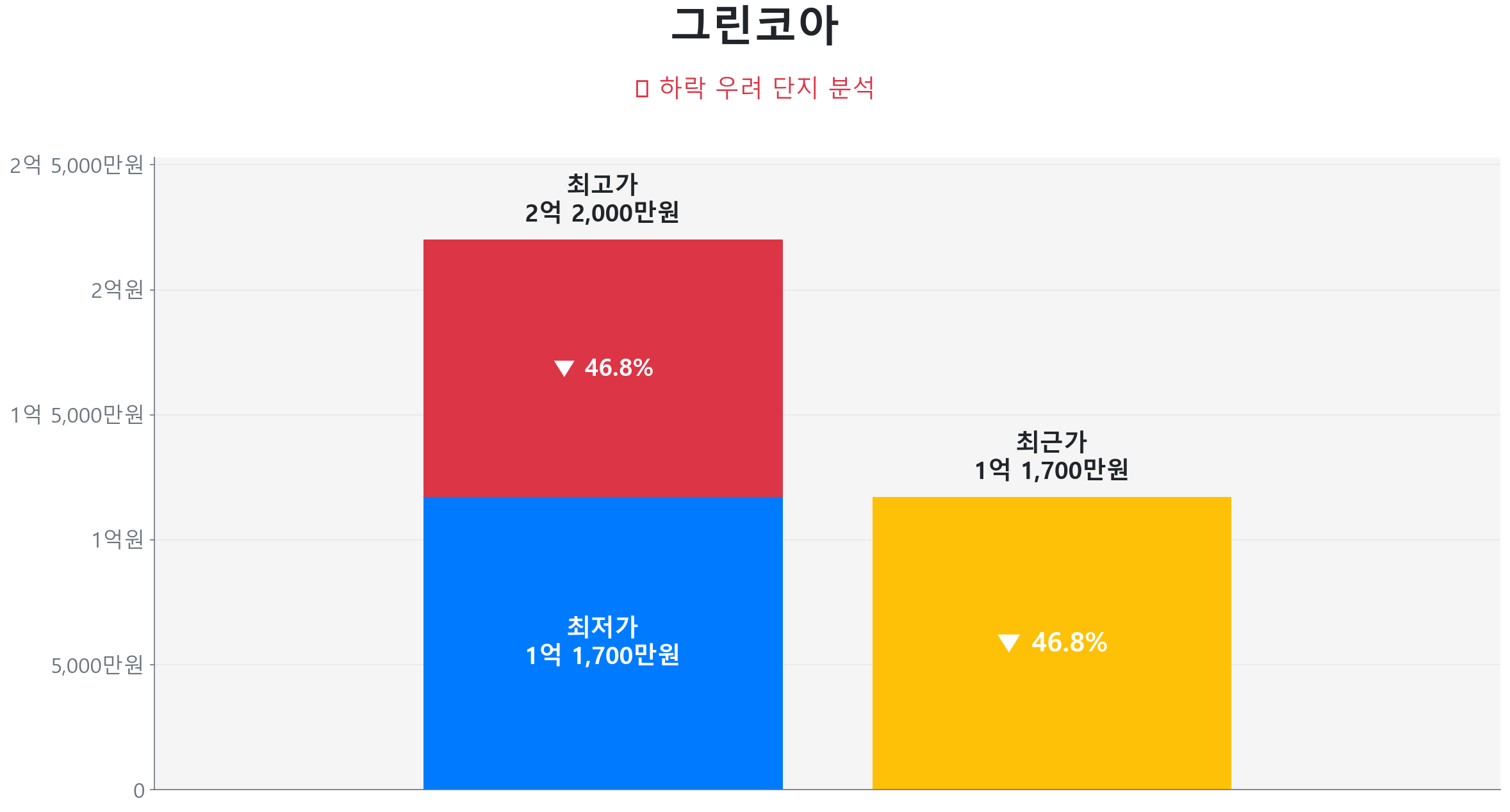 1991년 준공된 1,468세대 규모의 대단지 구축 아파트인 그린코아는 만덕동의 터줏대감 역할을 해왔으나, 연식으로 인한 노후화가 진행 중입니다. 시장에서는 주변 대장주 단지 대비 낮은 진입 장벽과 우수한 가격 경쟁력으로 고점 대비 46.82% 하락하며 상당한 가격 조정을 겪어 저점 매수 기회가 부각되고 있습니다.