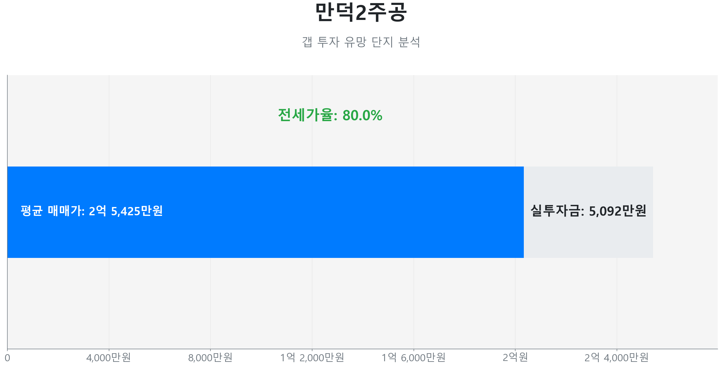현재 비규제 지역으로 분류되어 소액 갭투자가 가능합니다. 만덕2주공의 경우 전세가율 80.0%를 유지하고 있어, 실투자금 약 5,092만 원의 소액으로도 접근할 수 있는 가성비 단지로 분석됩니다.