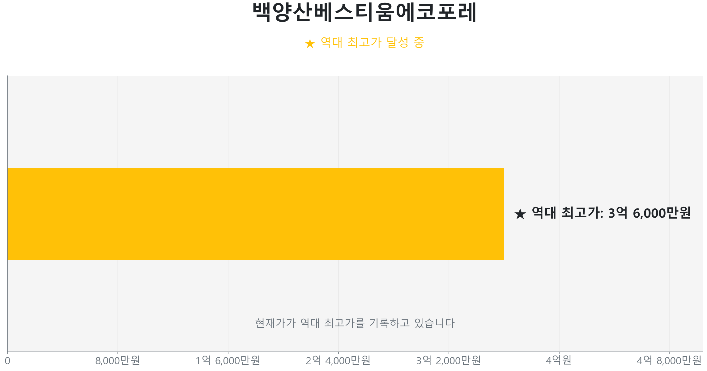 이러한 흐름은 593세대의 중규모 단지로 준공 3년차 신축 아파트인 만덕동 백양산베스티움에코포레 (84.0㎡ 타입)에서도 확인됩니다. 이 단지는 가장 높은 상승 탄력성을 보여주며 전고점을 돌파, 지난 2025년 11월 3억 6,000만 원에 거래되며 신고가를 기록했습니다.