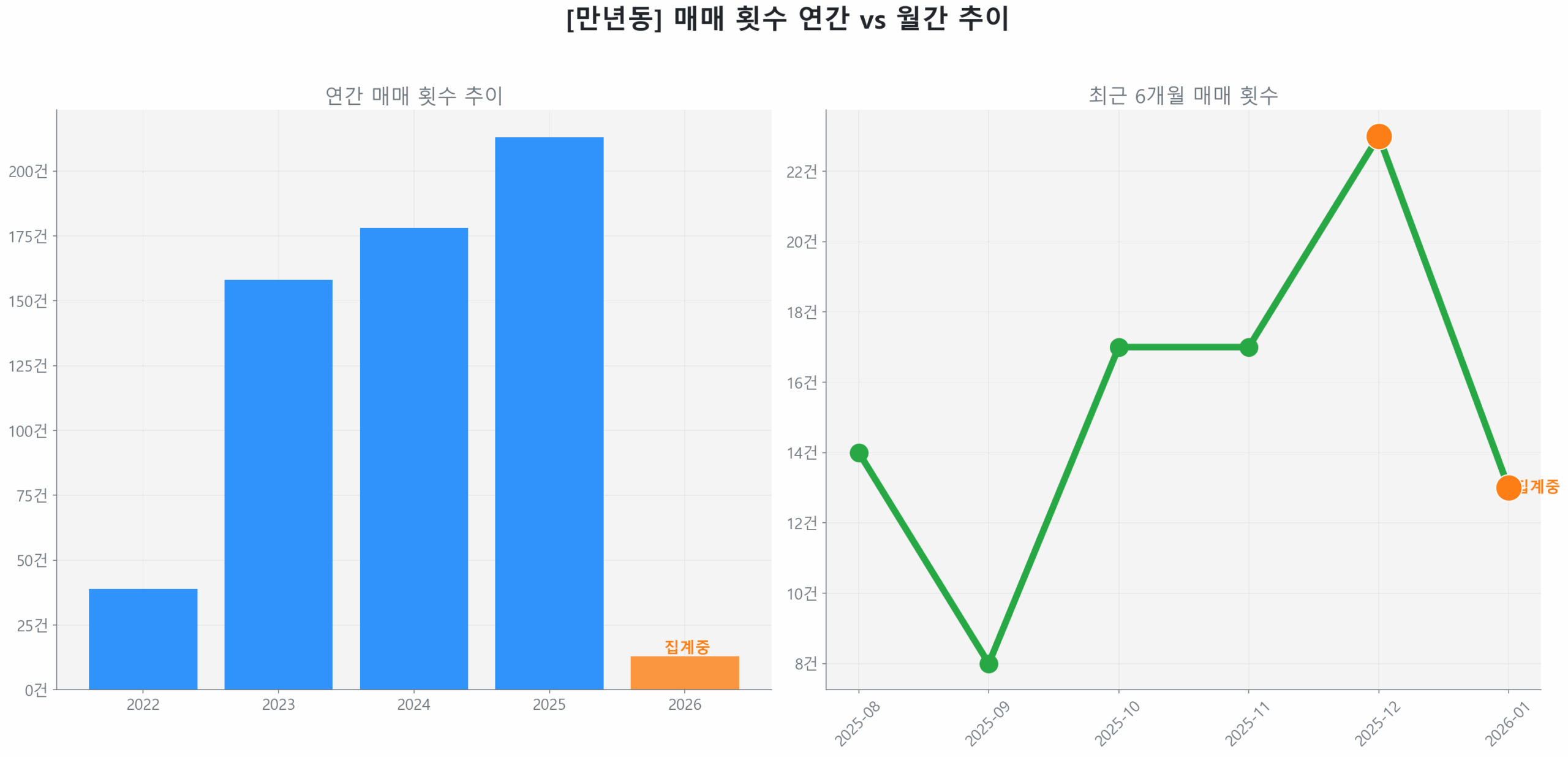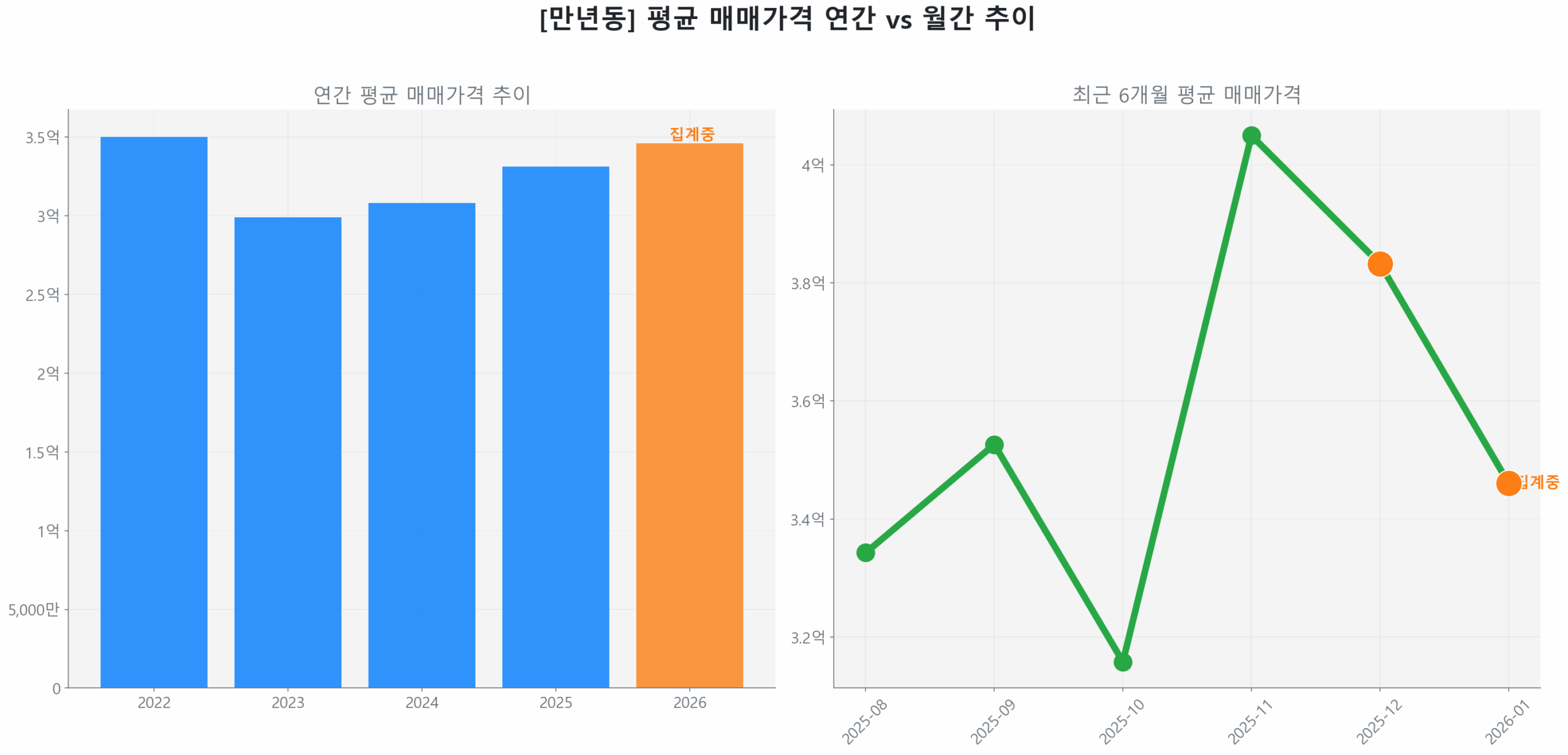 리스크와 기회가 공존하는 만년동 시장에서, 과연 개별 단지들의 실제 성적표는 어떨까요? 이제 구체적인 가격과 거래량 데이터를 통해 시장의 현주소를 면밀히 분석해 보겠습니다.