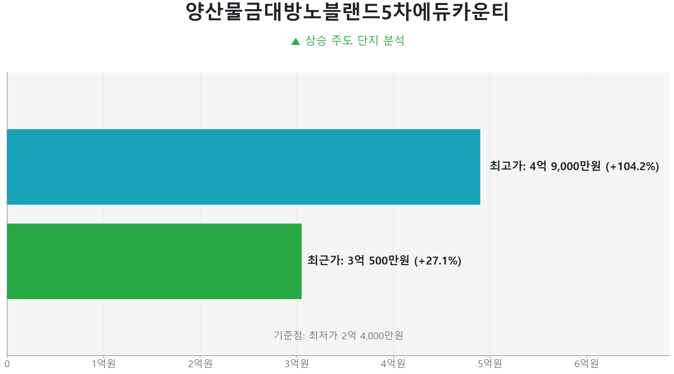 이 단지는 활발한 거래량을 보이며 시장 내 압도적인 유동성을 증명하고 있으며, 양산도시철도 개통과 가산일반산업단지 준공이라는 지역 호재의 직접적인 수혜를 기대할 수 있습니다.