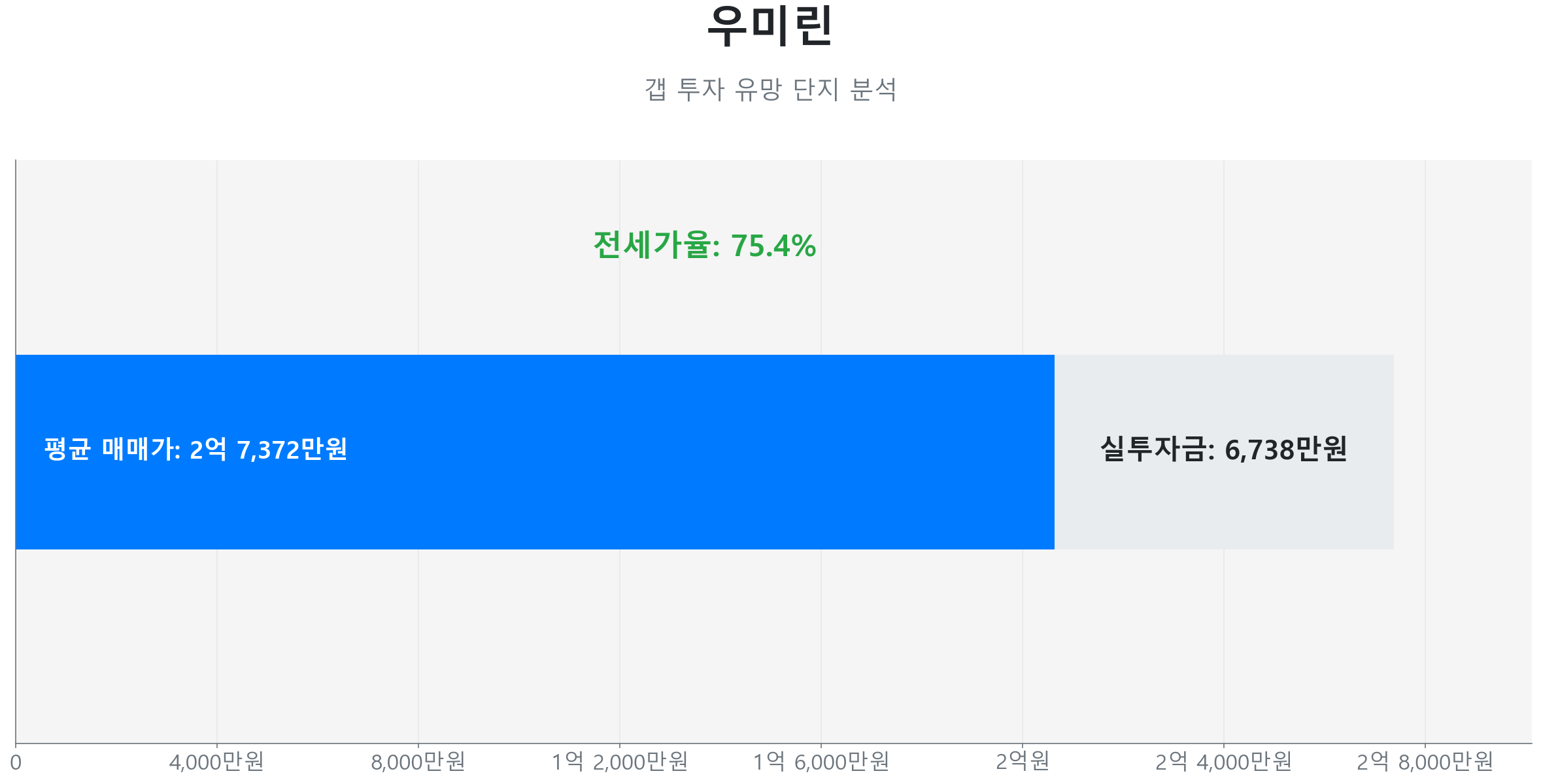 마지막으로 물금읍 우미린 59.0㎡ 타입(2013년 준공, 720세대) 역시 전세가율 75.38%에 약 6,738만 원의 가벼운 실투자금이 매력적이며 (전세가율 75.38%), 증산역 도보권과 초등학교 인접으로 실거주 만족도가 높고 상권 회복에 따른 가치 재평가가 기대됩니다.