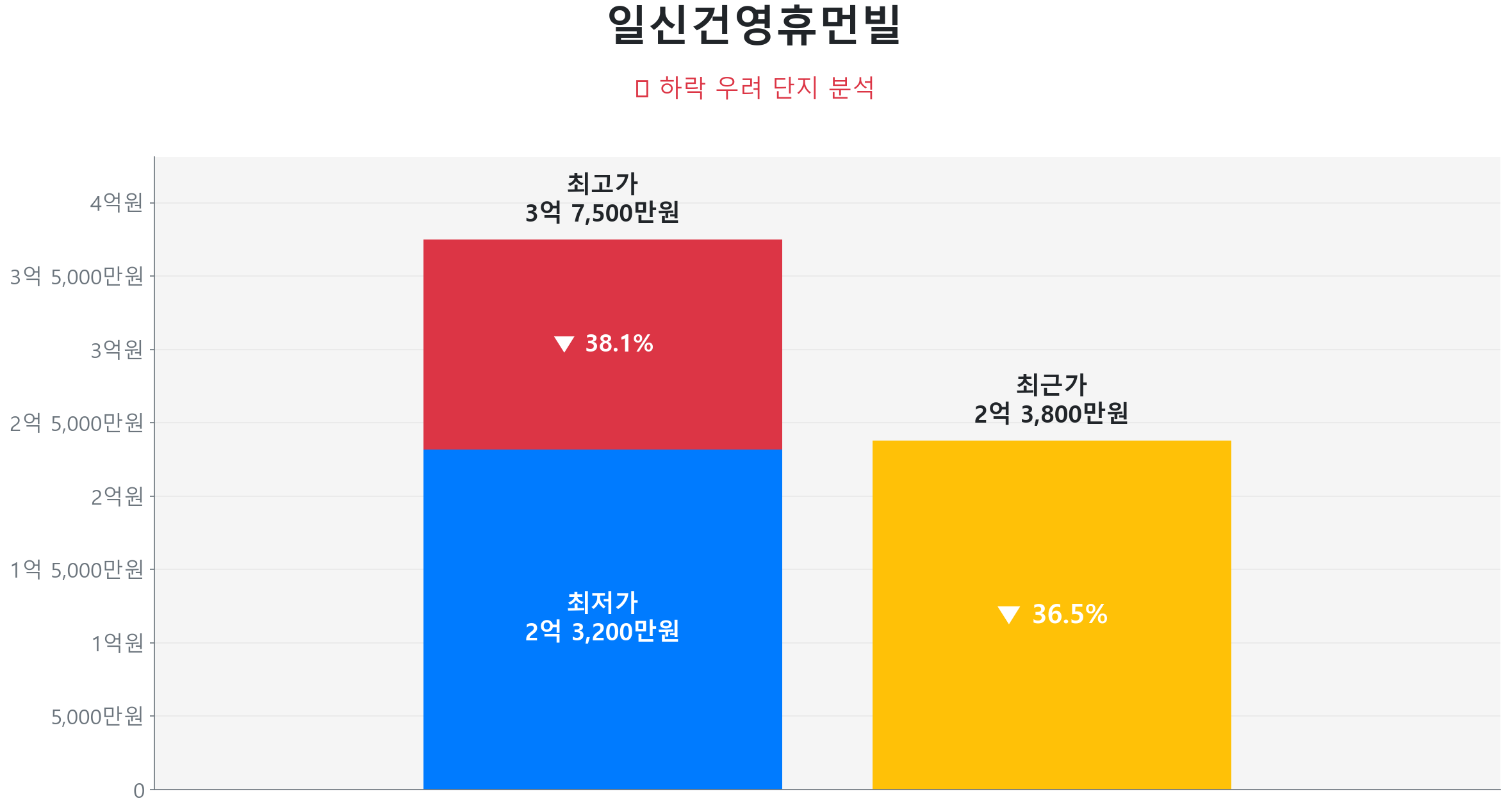 데이터 분석에 따르면, 전년 대비 매매가가 6.4% 하락하며 매수 기회가 발생한 구간으로 평가됩니다. 다만 4건의 꾸준한 거래량은 실수요가 여전히 존재함을 보여줍니다. 실제로 최근 2025년 12월에 3층 매물이 5억 6,000만 원에 거래되었습니다. 이는 2022년 4월에 기록된 역사적 고점 7억 2,000만 원 대비 22.22% 하락한 수준입니다.