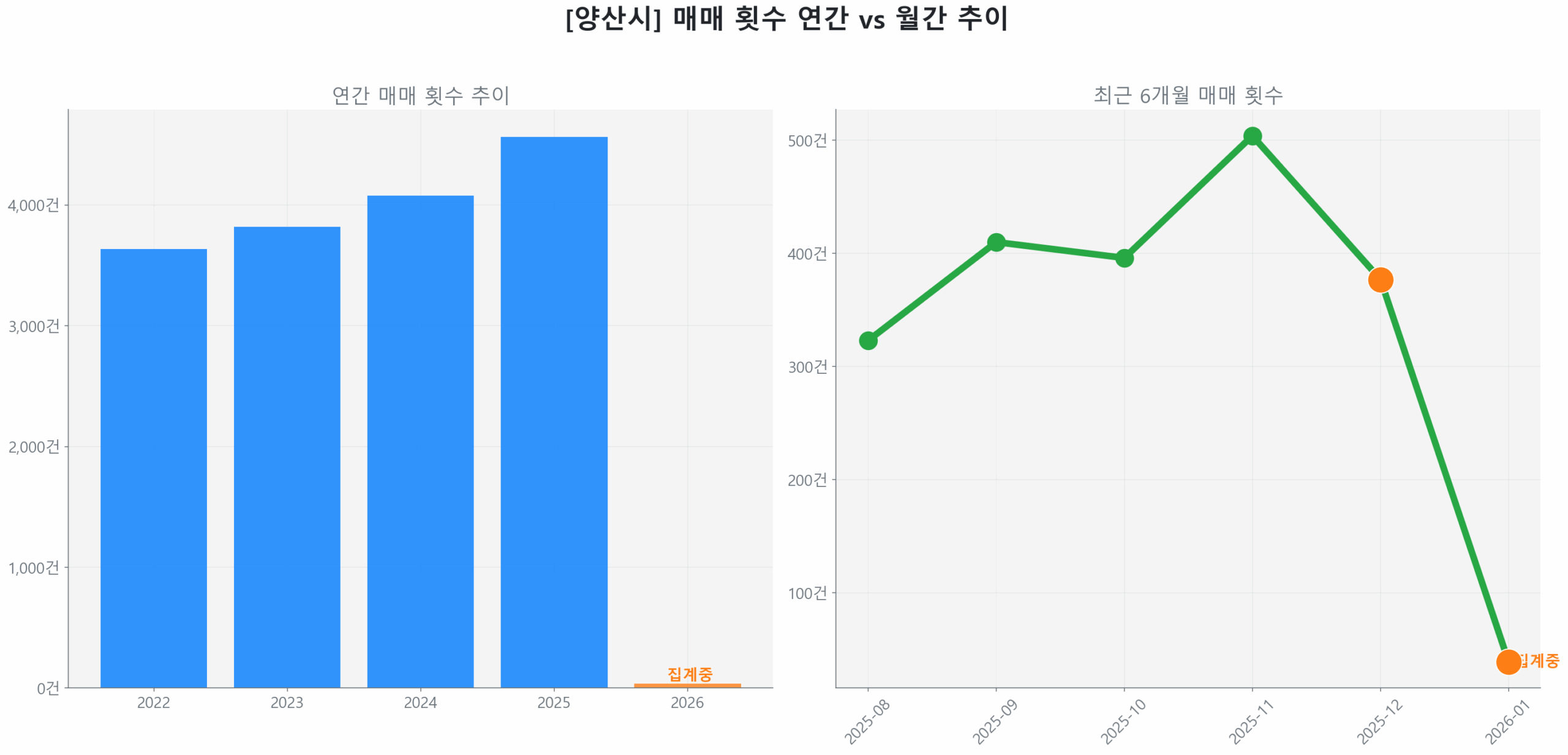 전문 시장 분석에 따르면, 2026년 수도권 규제의 풍선효과와 함께 양산도시철도 개통 가시화, 가산일반산업단지 준공이라는 굵직한 호재들이 맞물려 부울경 메가시티의 핵심 거점으로 부상할 잠재력이 높습니다. 다만, 모든 투자에는 기회와 리스크가 따르므로 복합적인 요인들을 면밀히 분석하는 전략이 중요합니다.