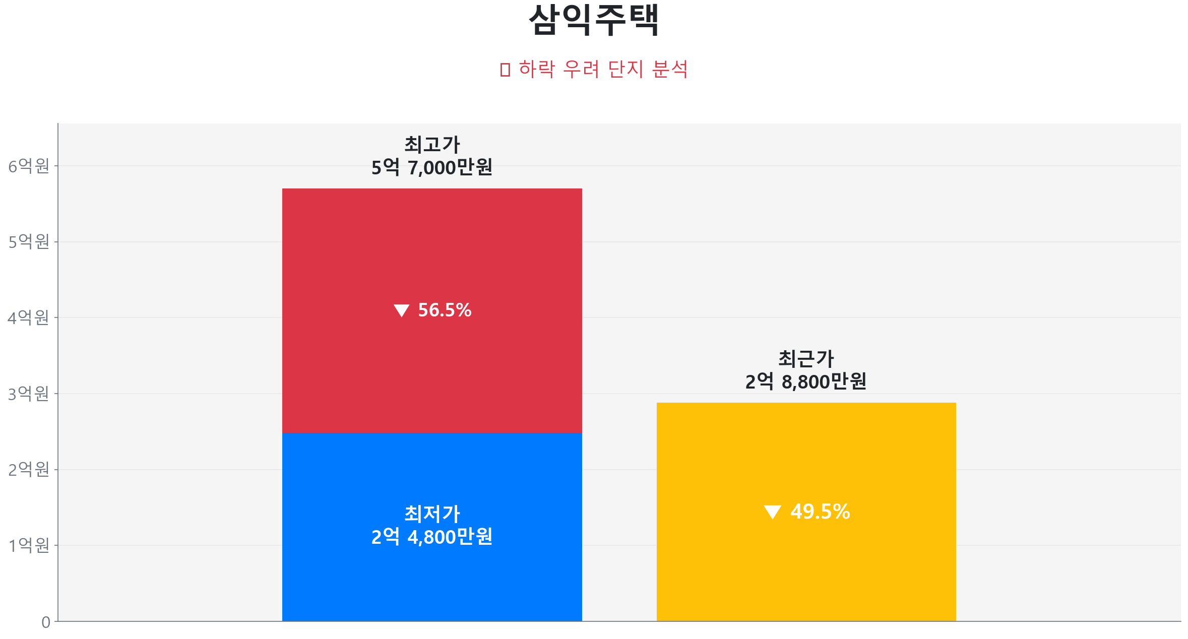 다만, 이 가격 비교는 로열층과 저층부 간의 직접적인 비교이므로, 층과 향에 따른 가치 차이를 감안하면 실제 시장의 체감 하락폭은 데이터상의 수치와 다를 수 있다는 점을 반드시 참고해야 합니다.