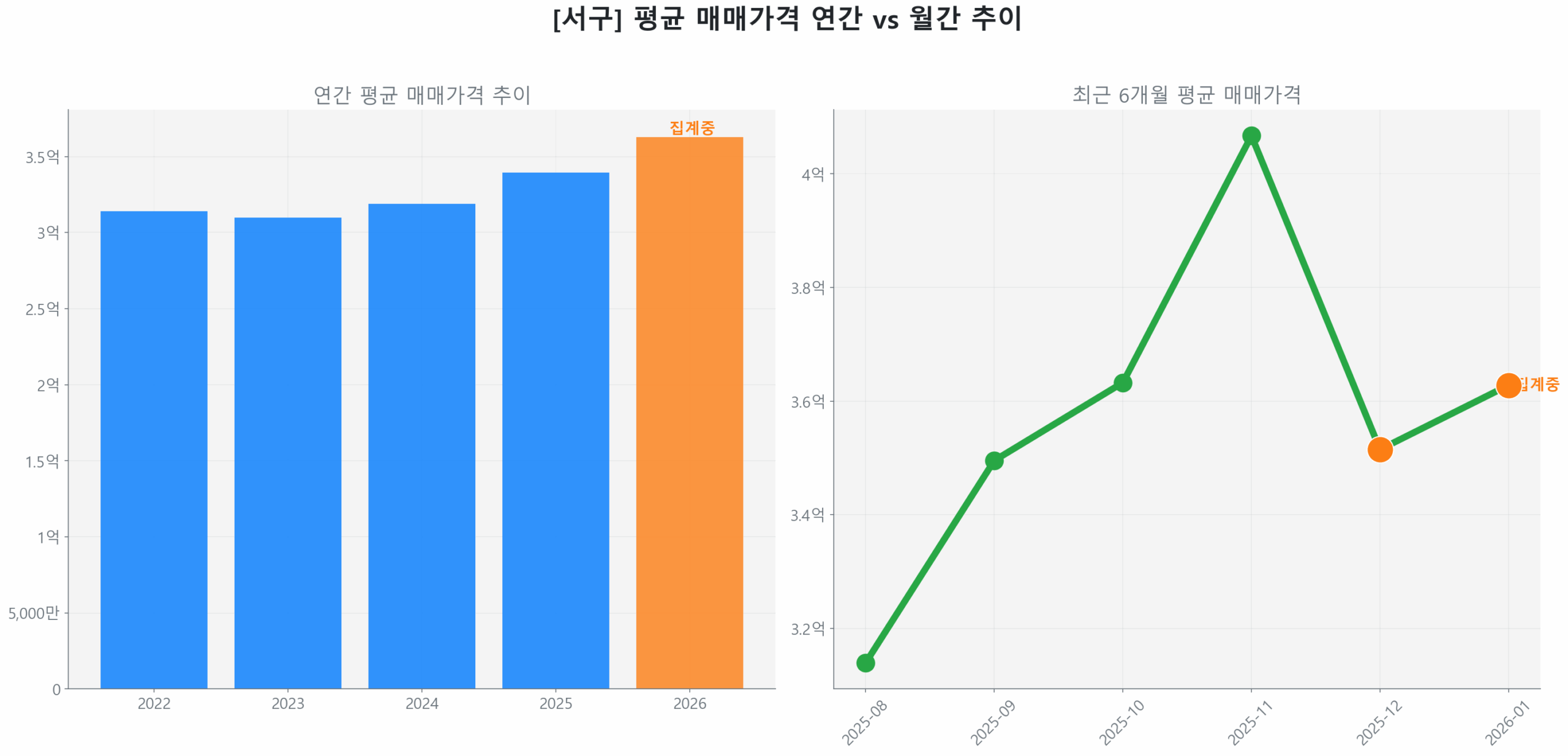 최근 3개월(2025년 10월~12월) 거래량은 43건으로 전 분기 대비 62.5% 급증했고, 같은 기간 평균 가격은 4억 9,764만 원을 기록하며 17.8% 상승하여 거래량과 가격이 동반 상승하는 강력한 시장 에너지를 보여줍니다.